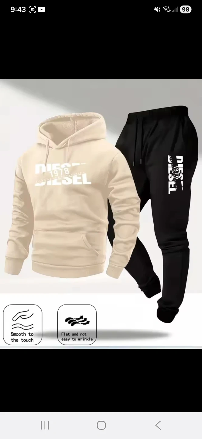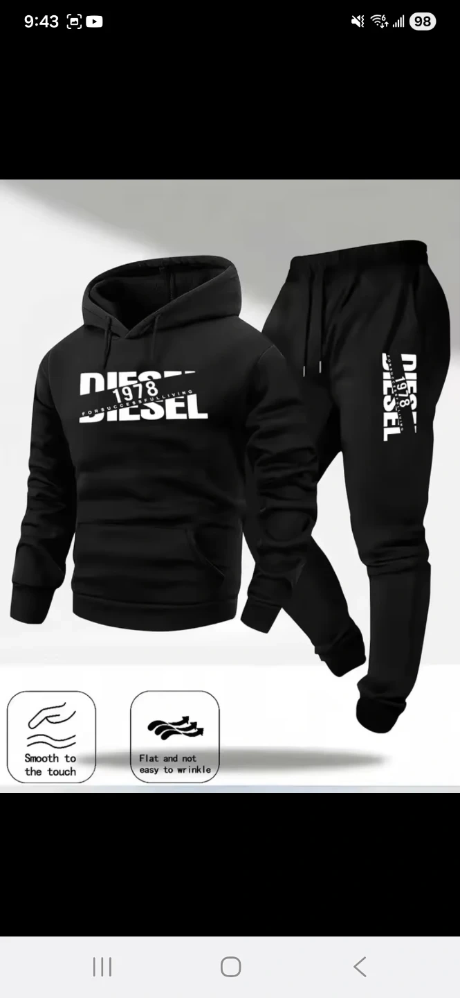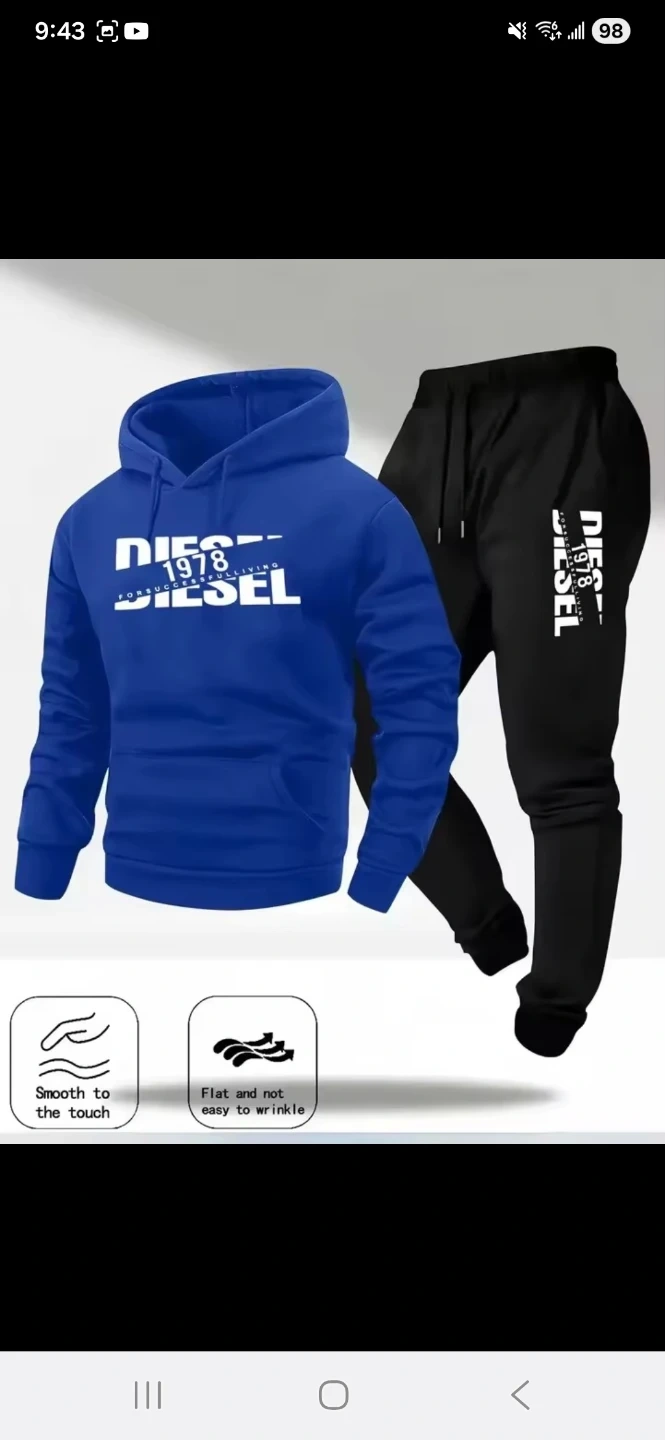 Diesel 1978 tracksuit set with a hoodie and matching joggers. Made with a smooth fabric that's not easy to wrinkle. Available in multiple colours and sizes.