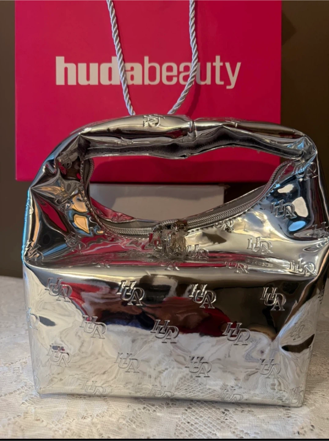💝Huda Beauty Silver Metallic Mini Bag/Makeup Pouch NEW!