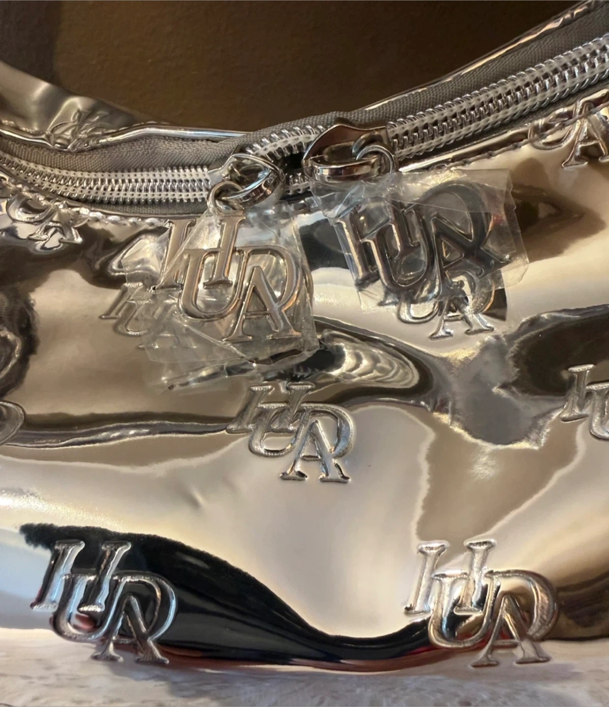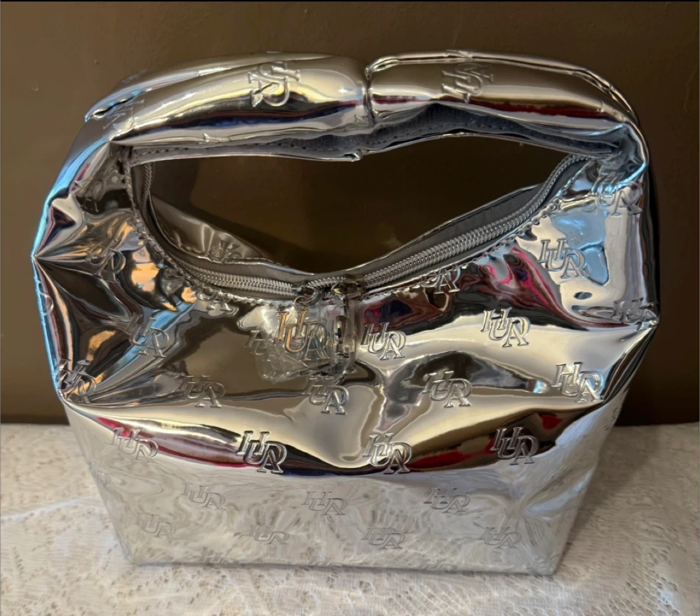 • Eye-catching metallic chrome silver with embossed "HB" monogram logo throughout.