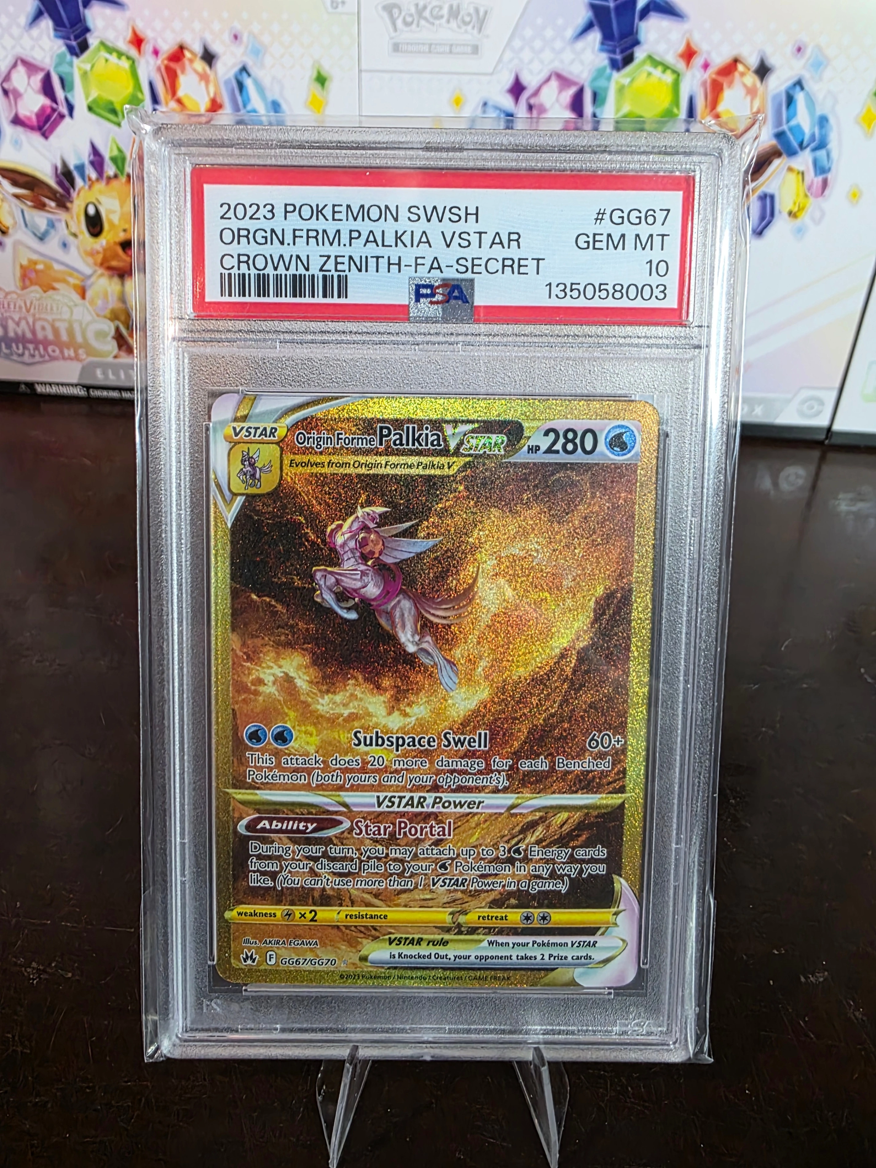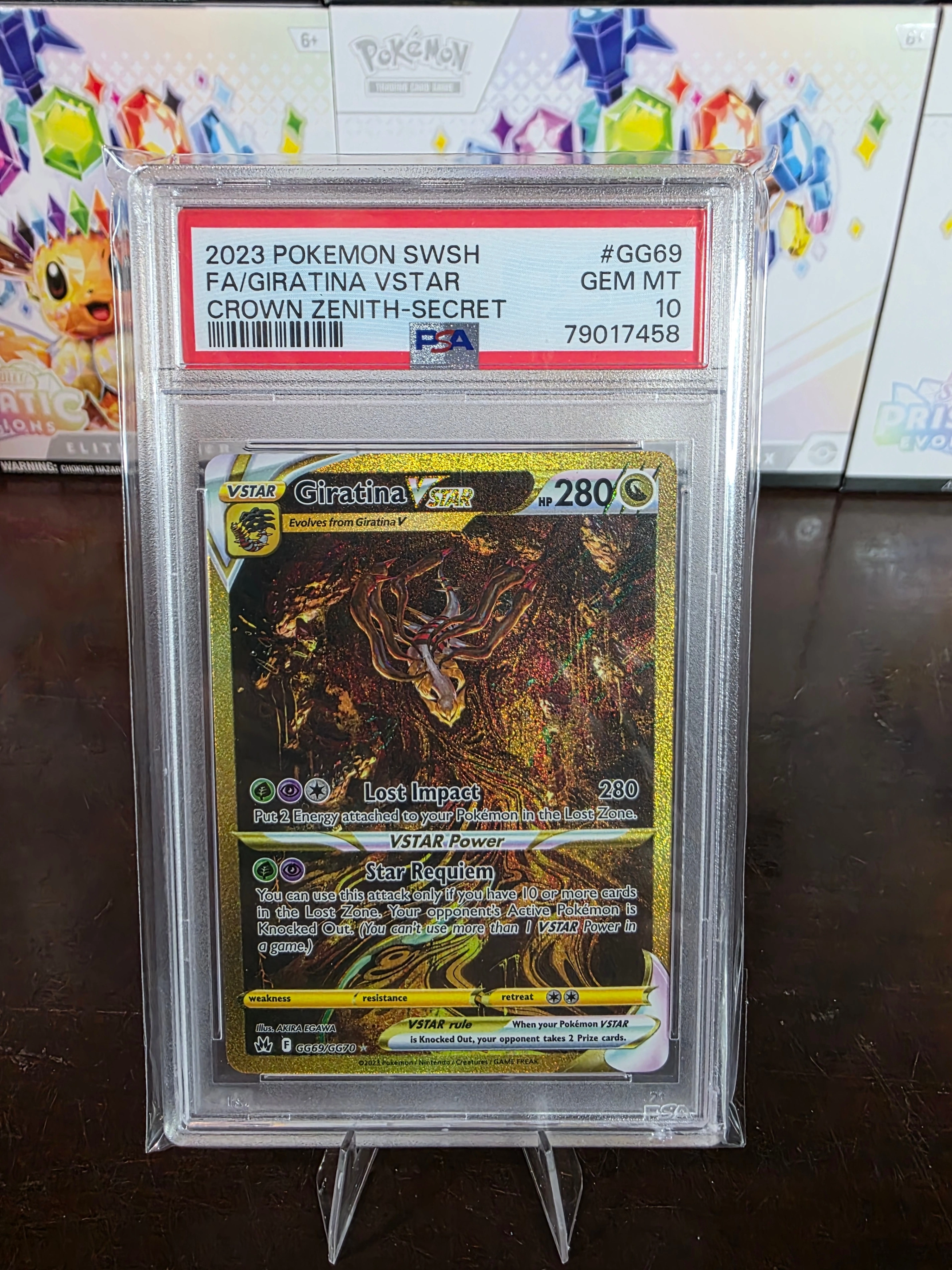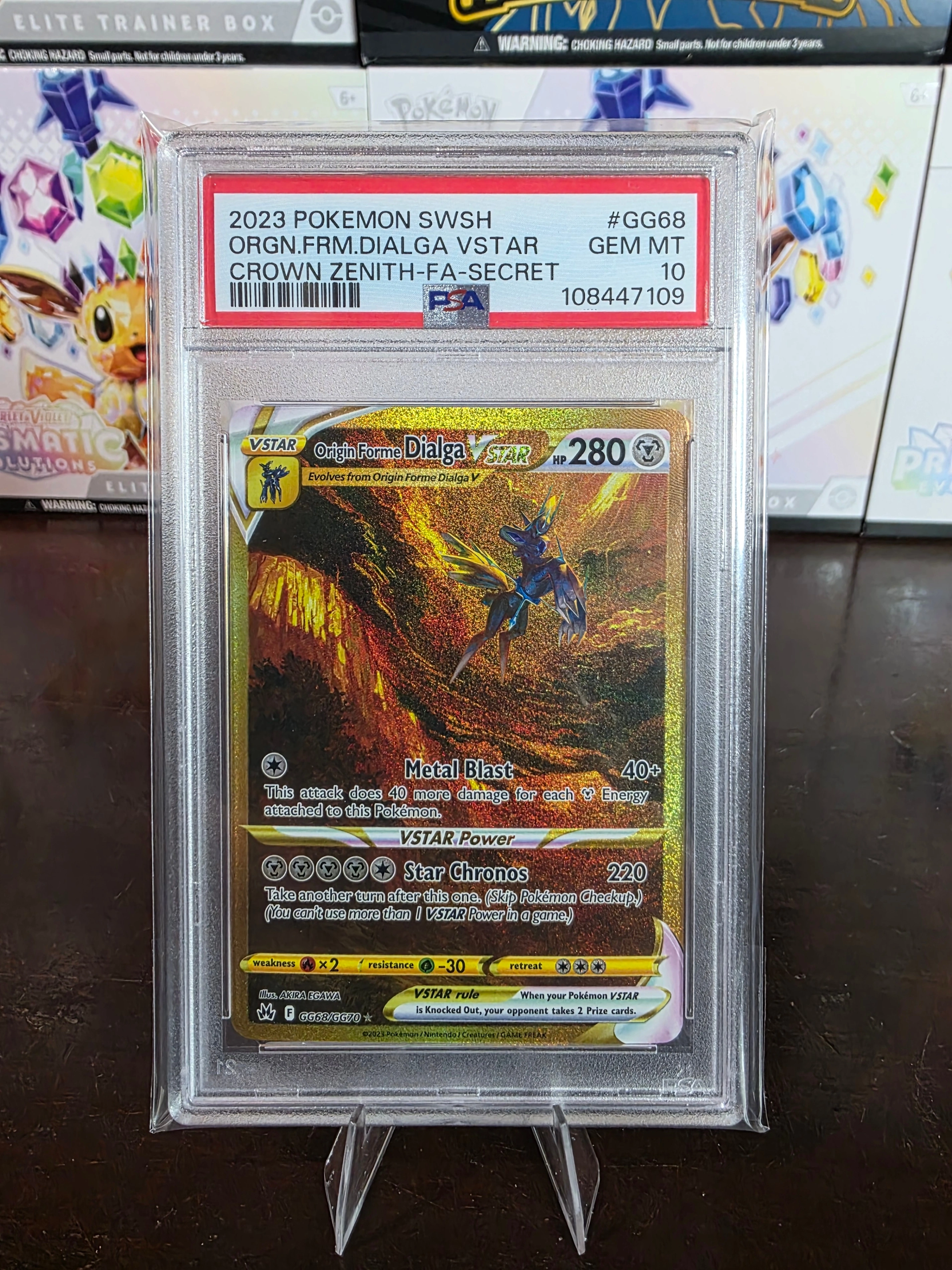 These cards originate from the highly popular Crown Zenith set, one of the most collectible modern Pokémon releases. The Gold VSTAR cards are considered the chase cards of the set, and having all four in PSA 10 condition is extremely difficult due to PSA’s strict grading standards (centering, corners, edges, surface).