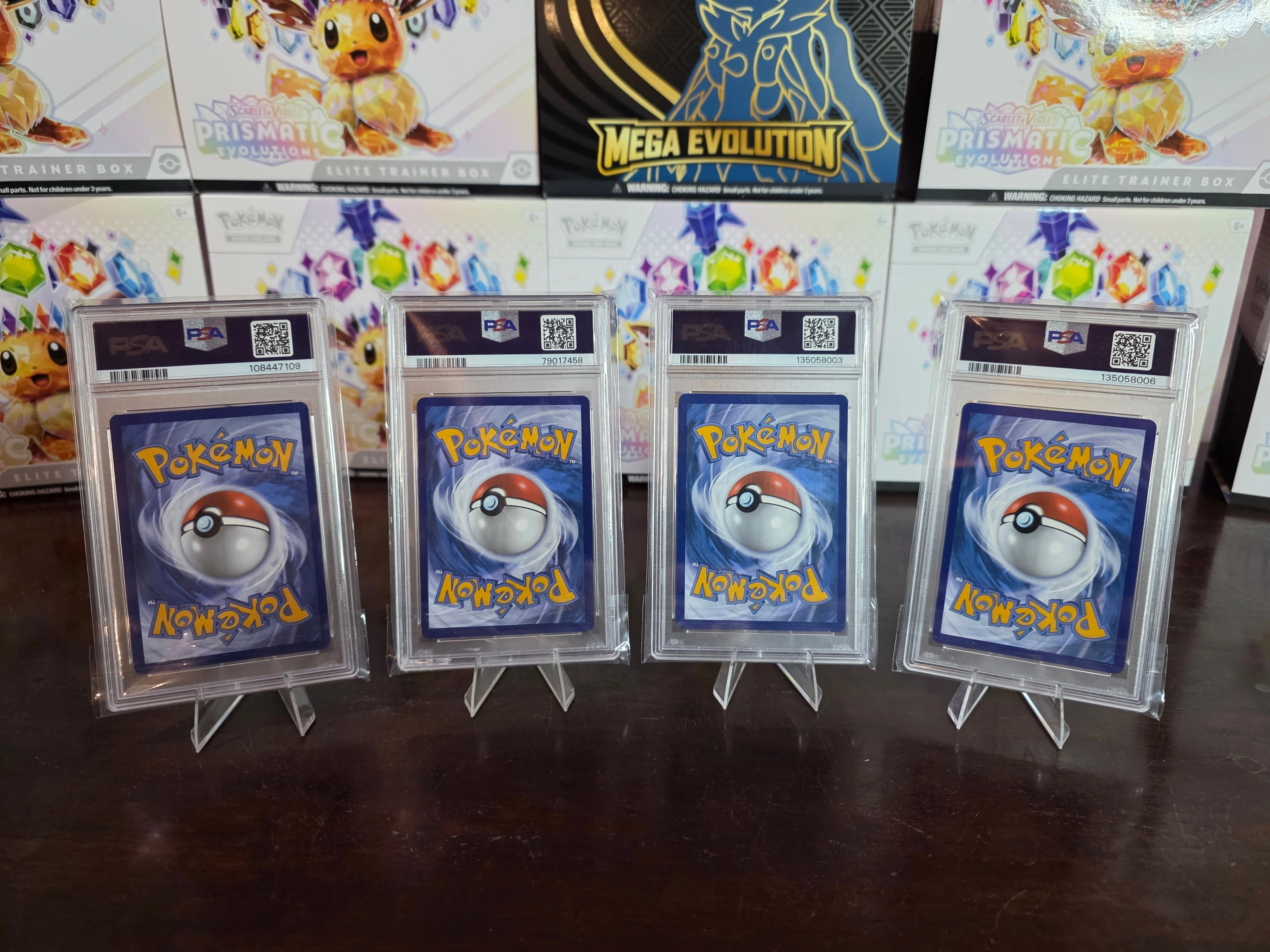 There is a premium built into the price because assembling all four in PSA 10 on your own is not easy. Serious collectors understand the rarity and long-term value of a matched Gem Mint set like this. PSA slabs protect authenticity, preserve condition, and remain highly liquid in the collector market — making them a strong investment piece.