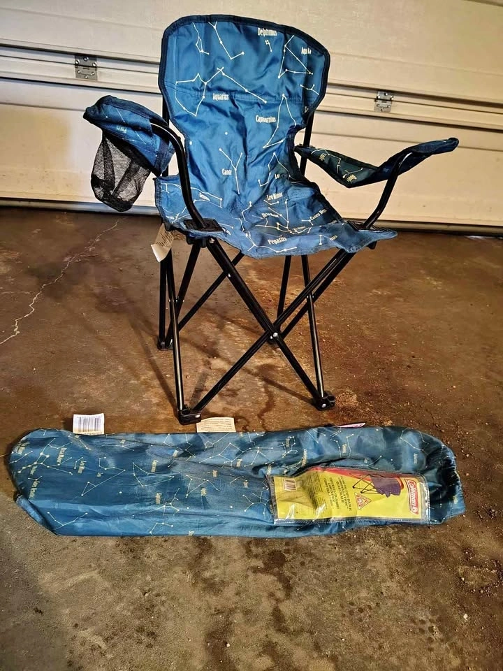 Get ready for camping season! We are selling a matching set of two Coleman Kids Glow-in-the-Dark Quad Chairs. These are perfect for the backyard, the lake, or the soccer sidelines.