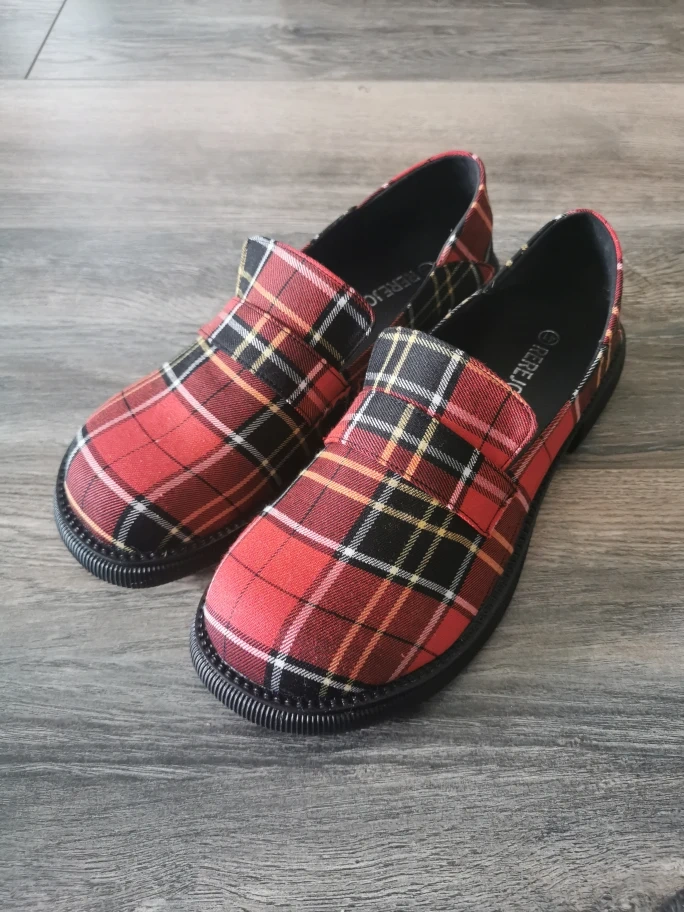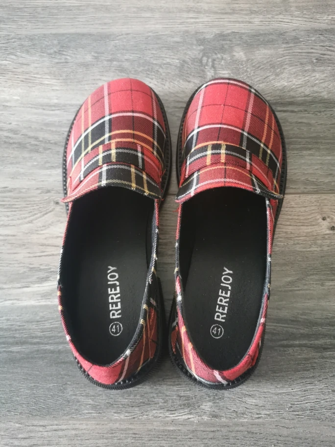 REREJOY Red Plaid Loafer Shoes - Size 41