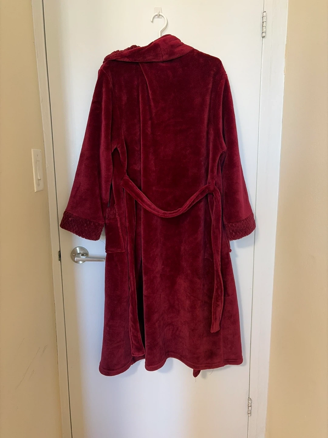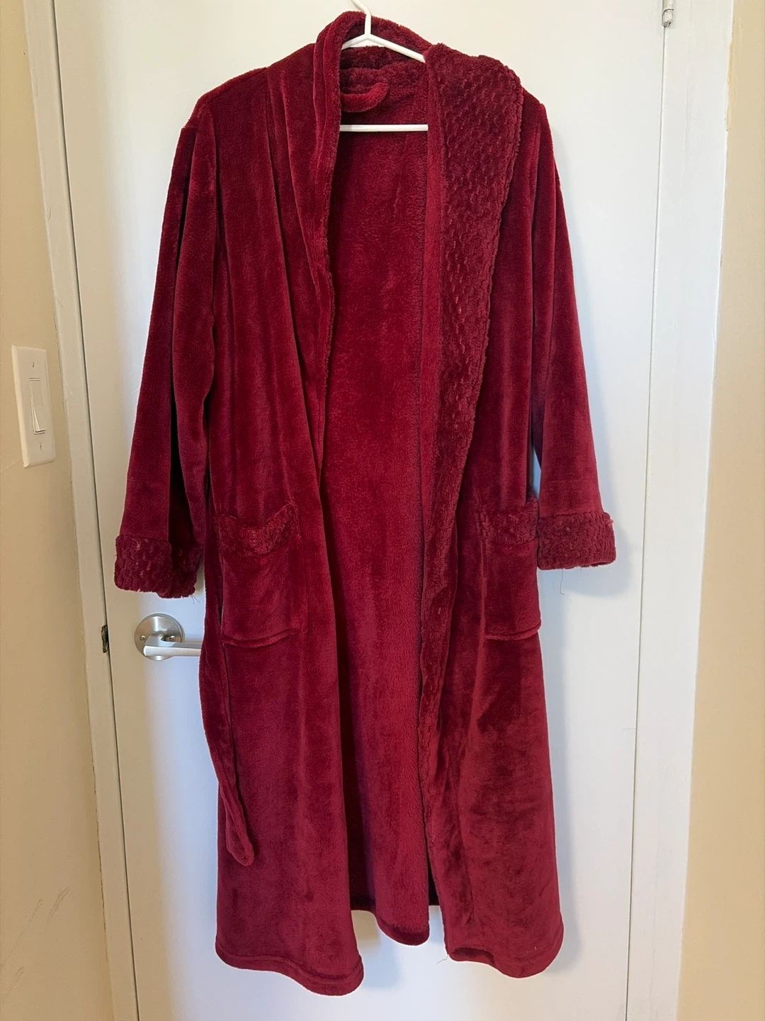 Buy & SellVelvet RobeVelvet Robe$5Cozy velour robe in a deep red colour. Features a tie belt and textured trim on the cuffs and collar. It has two front pockets. Perfect for lounging!ConditionLike newWHERE TO MEETCheck LocationView MapSELLERverifiedResellerApplewood26719 reviews0 chats·0 favorites·7 viewsSEND CHAT TO SELLERHi Reseller! I’m interested in your listing.Hi Reseller! I’m interested in your listing.Get the Karrot app to chatSign In to chat