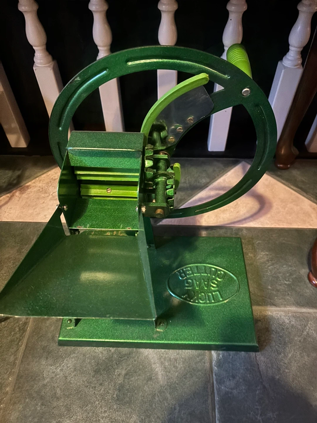 I'm selling a Lucky Saag Cutter. It's in great condition and ready for your kitchen! It's a vibrant green colour. Can cut all sorts of vegetables quickly and easily