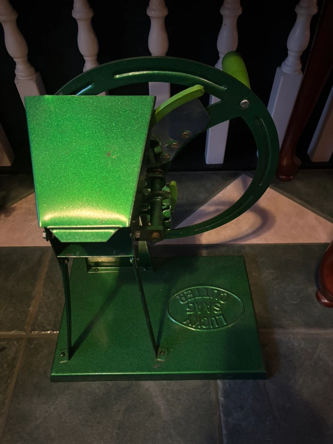 I'm selling a Lucky Saag Cutter. It's in great condition and ready for your kitchen! It's a vibrant green colour. Can cut all sorts of vegetables quickly and easily