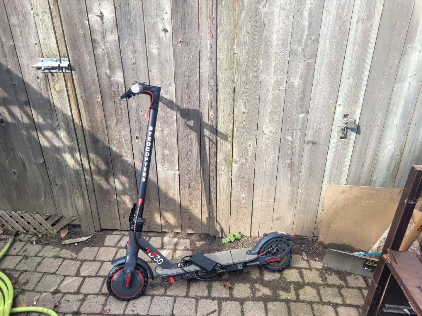 This is a black GyroScooters electric scooter. It's a fun way to get around town. Great for commutes or just enjoying the outdoors!