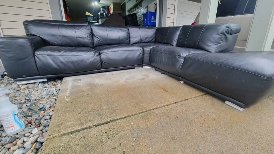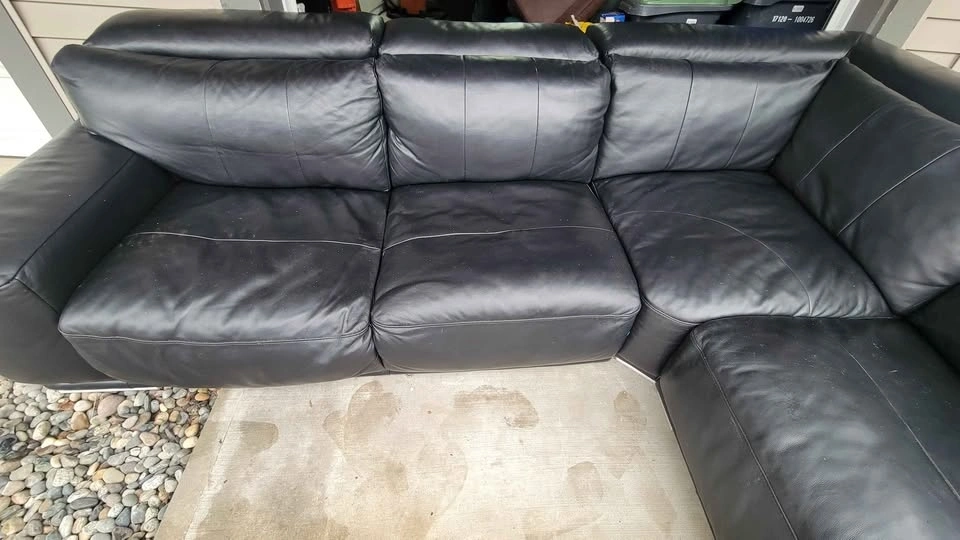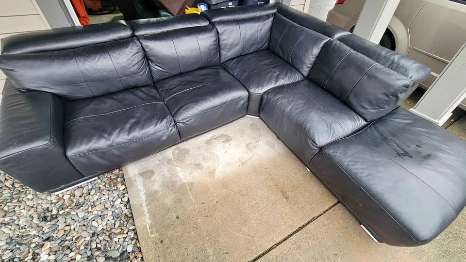 Selling a LARGE Black Top Grain Leather 3pc. Sectional Sofa in great used condition. (FARRELL Brand)