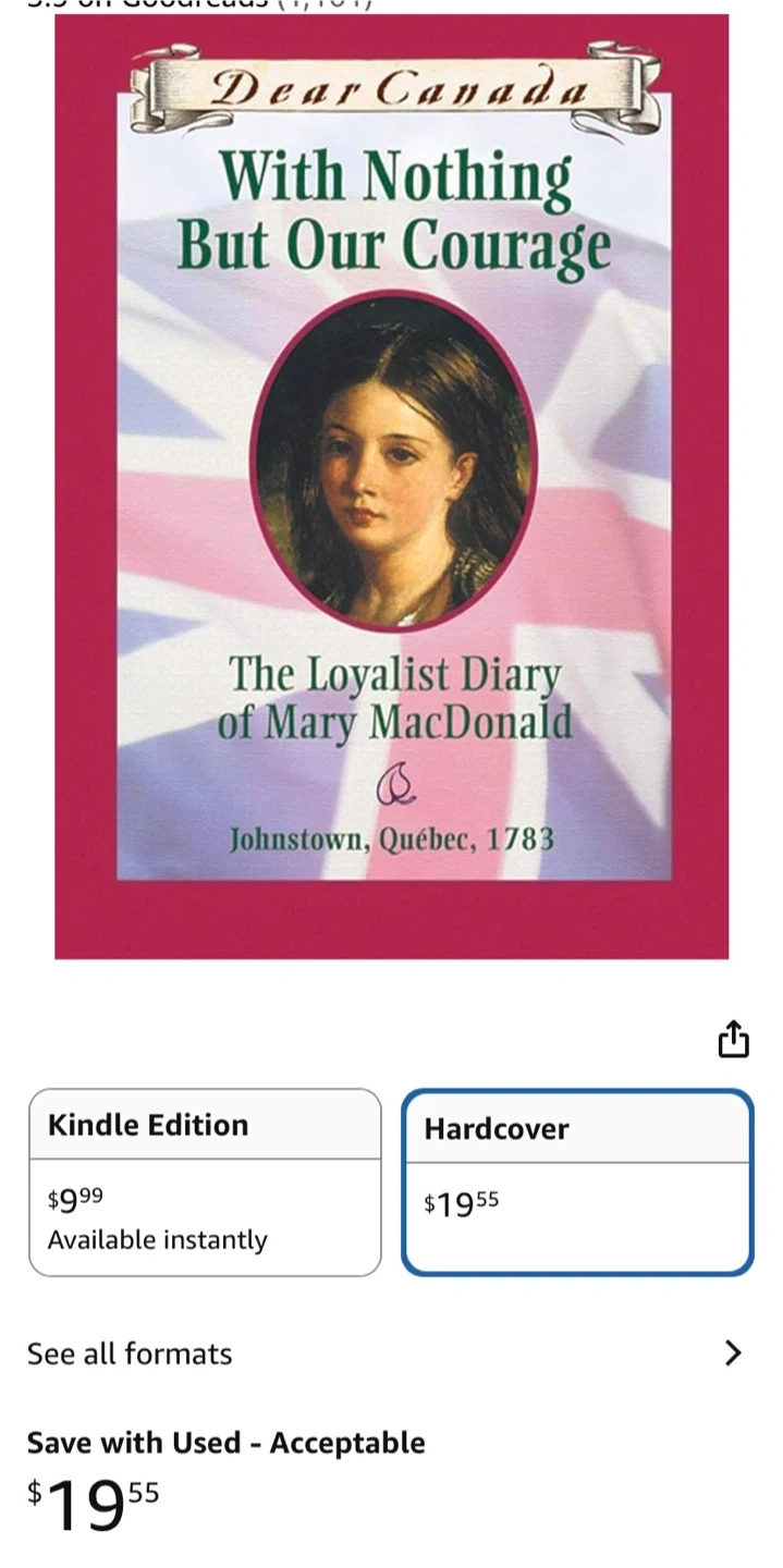 This is the hardcover edition of 'With Nothing But Our Courage', detailing the Loyalist diary of Mary MacDonald. It's set in Johnstown, Quebec, 1783. This historical account offers a glimpse into a significant period. It provides insights into the experiences of Loyalists during that era.