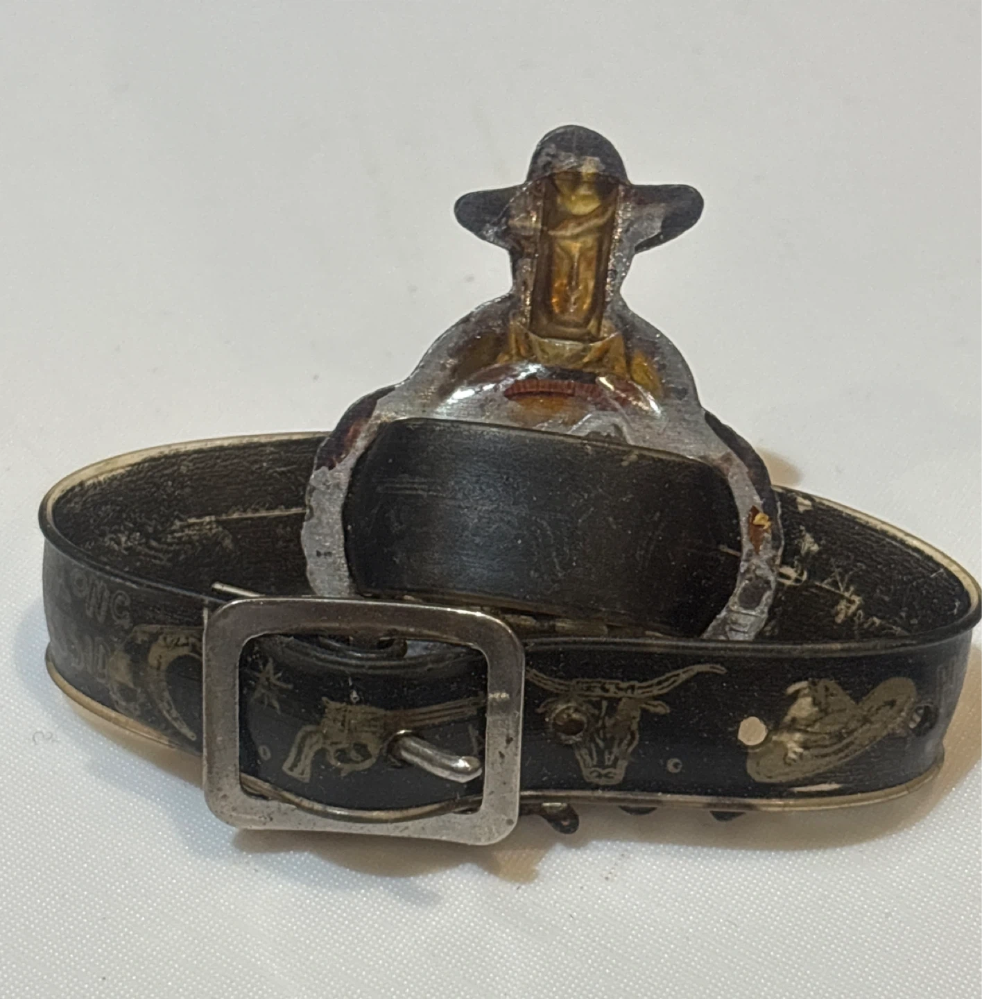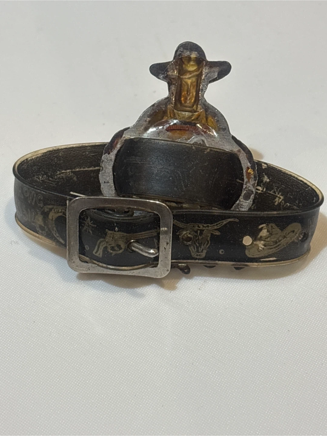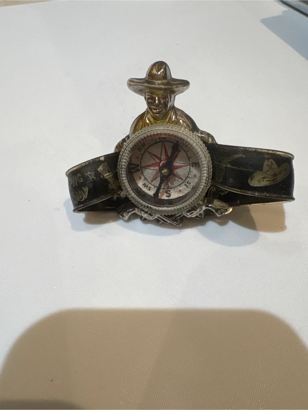 Selling a cool vintage Hop-Along Cassidy cowboy compass compass ! It features a cowboy figure and a functional compass set in a decorative band with western-themed designs. A unique piece for collectors or anyone who loves vintage accessories