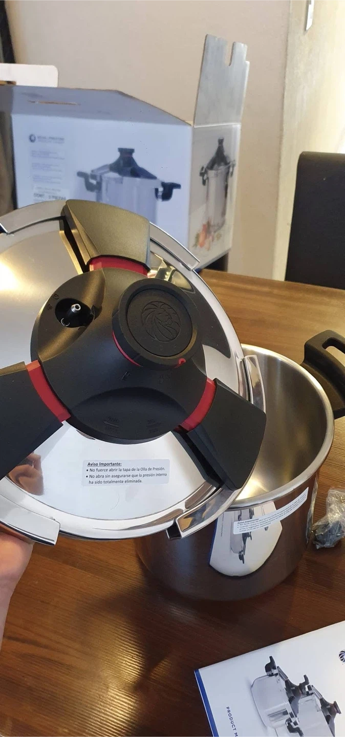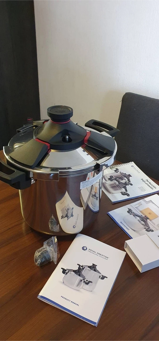 This is a Royal Prestige 10L pressure cooker. It's made of stainless steel and includes product manuals. Its large capacity is great for family meals! Olla de Precion Royal prestige , es Nuba en su caja nunca usado