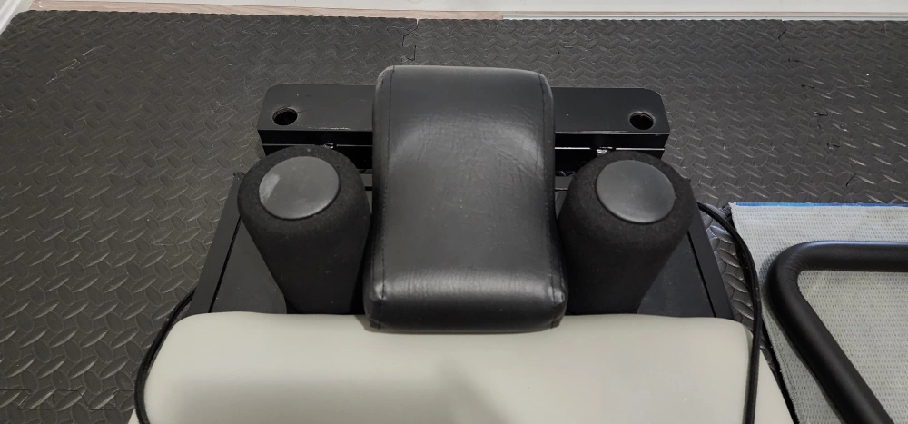 The machine includes adjustable clips for hand and foot straps, a taller Cardio Rebounder, a large trapezoidal platform for extra torso room, a wider foot bar for extended hip and leg motion range, and supportive head and neck pillows and shoulder pads.