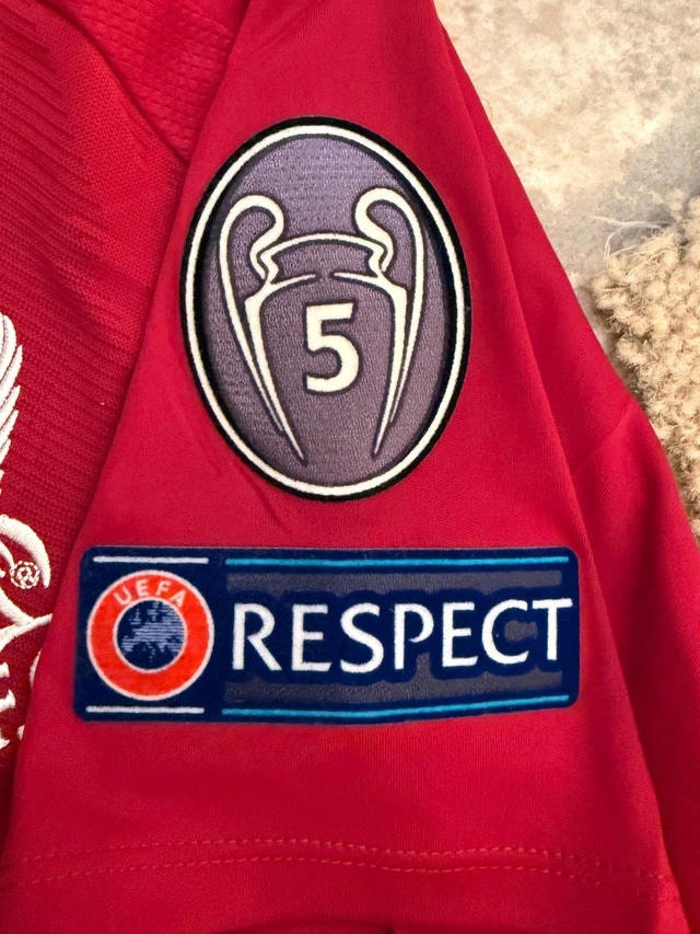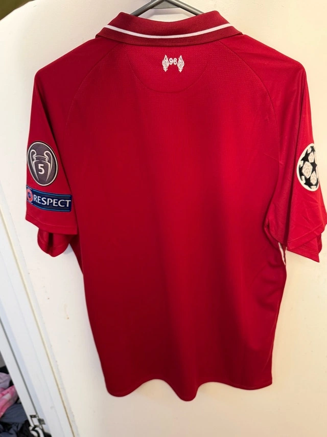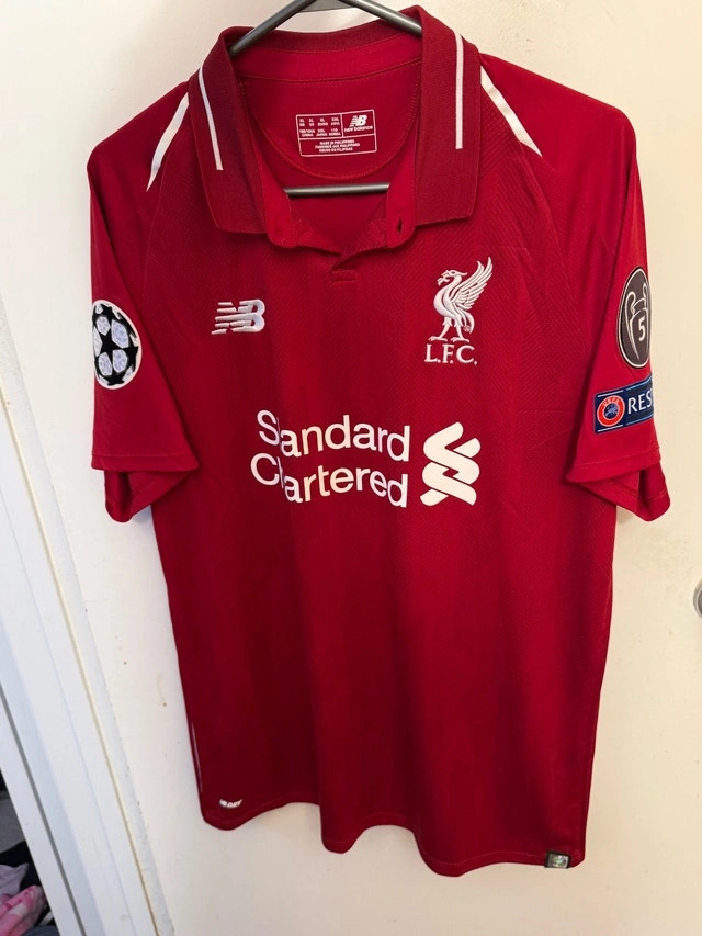 Liverpool home soccer jersey with UCL champions league patches on the sleeves. Size XL. Like new condition. Asking $80. Price is firm. From a bug free, smoke free, pet free home. Cash only please. Pick up only in the South Pembina, Fort Richmond Area.