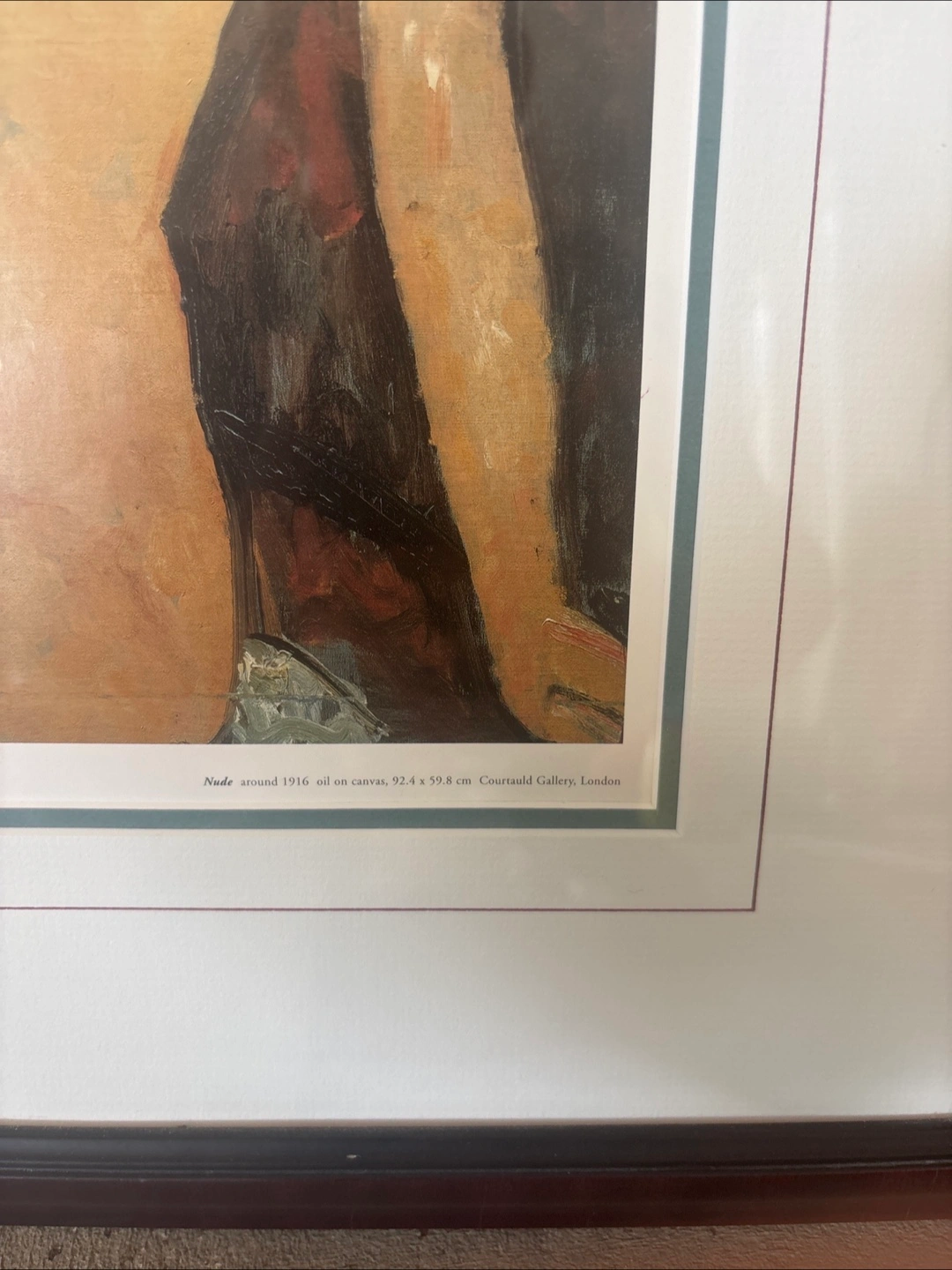 Beautiful framed art print of Amedeo Modigliani’s famous 1916 painting Nude. Professionally framed with mat and glass • Print features original museum details (Courtauld Gallery, London) • A classic vintage-style reproduction of an iconic modernist work
