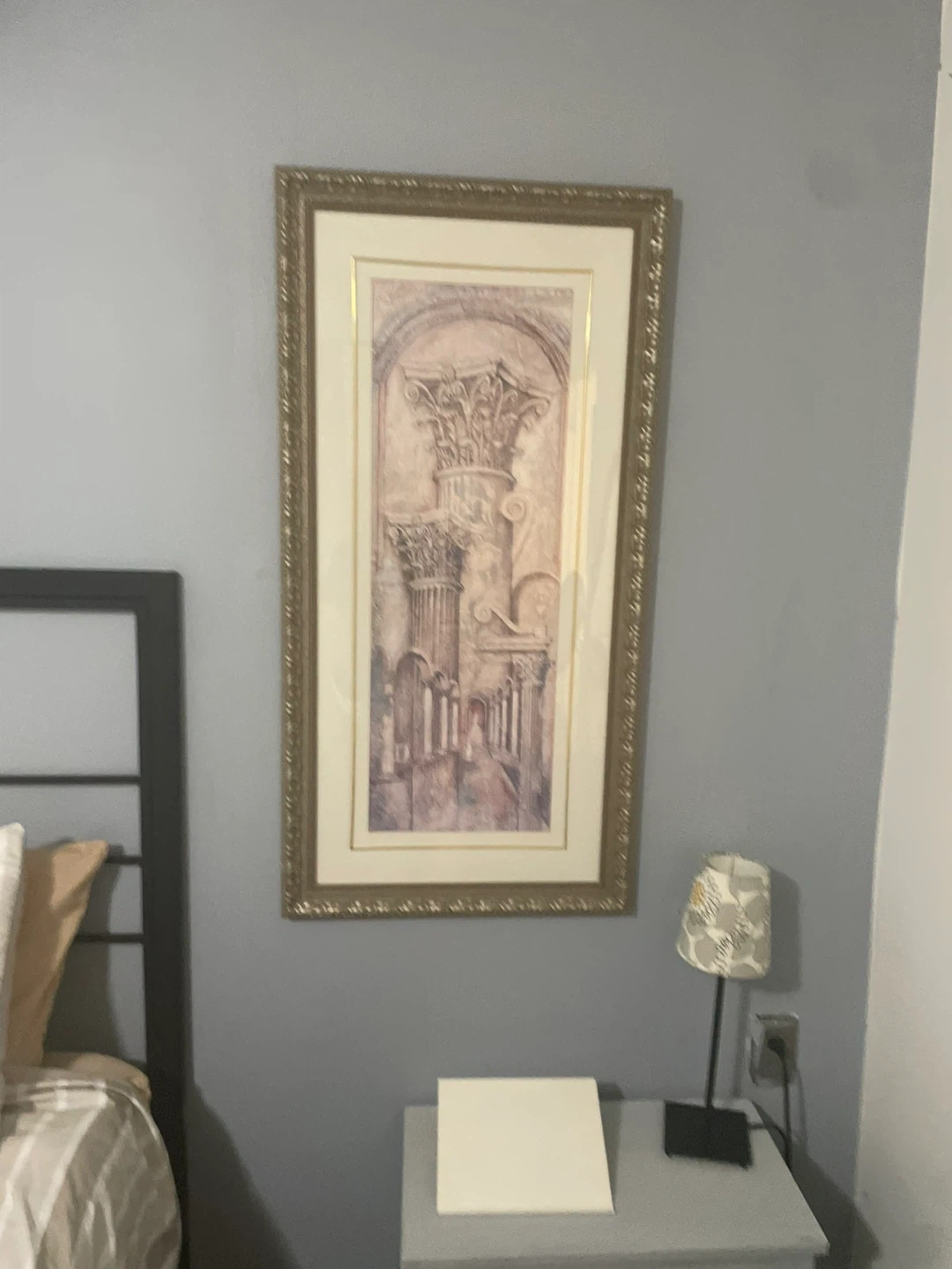 A framed art print featuring a classical architectural motif. The print is in a gold-tone frame. It would look great in any room. $25 for each - set of two