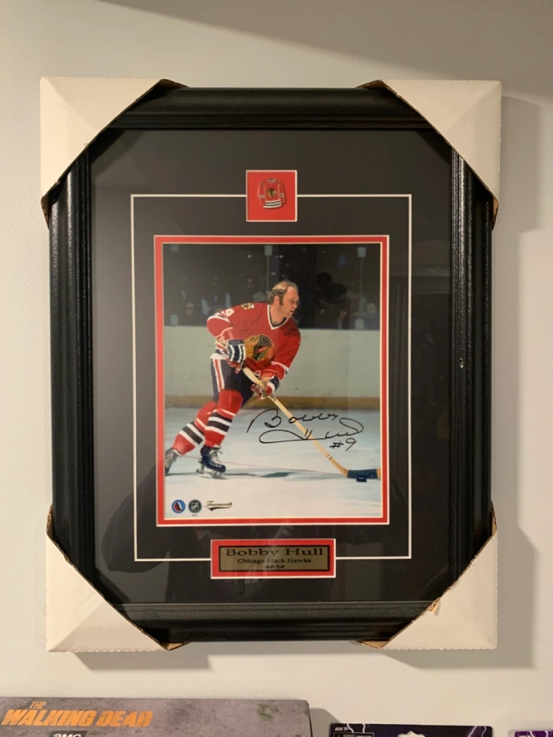 103Selling a framed (16x20)and autographed photo (8x10)of Bobby Hull from the Chicago Blackhawks! It's in great condition and ready to be displayed. Originally bought for $109.99