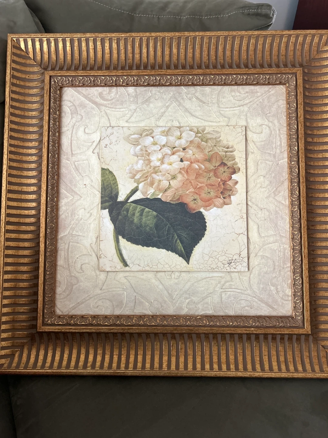 60A beautiful framed floral print, perfect for adding a touch of elegance to any room! The frame has a lovely golden finish.