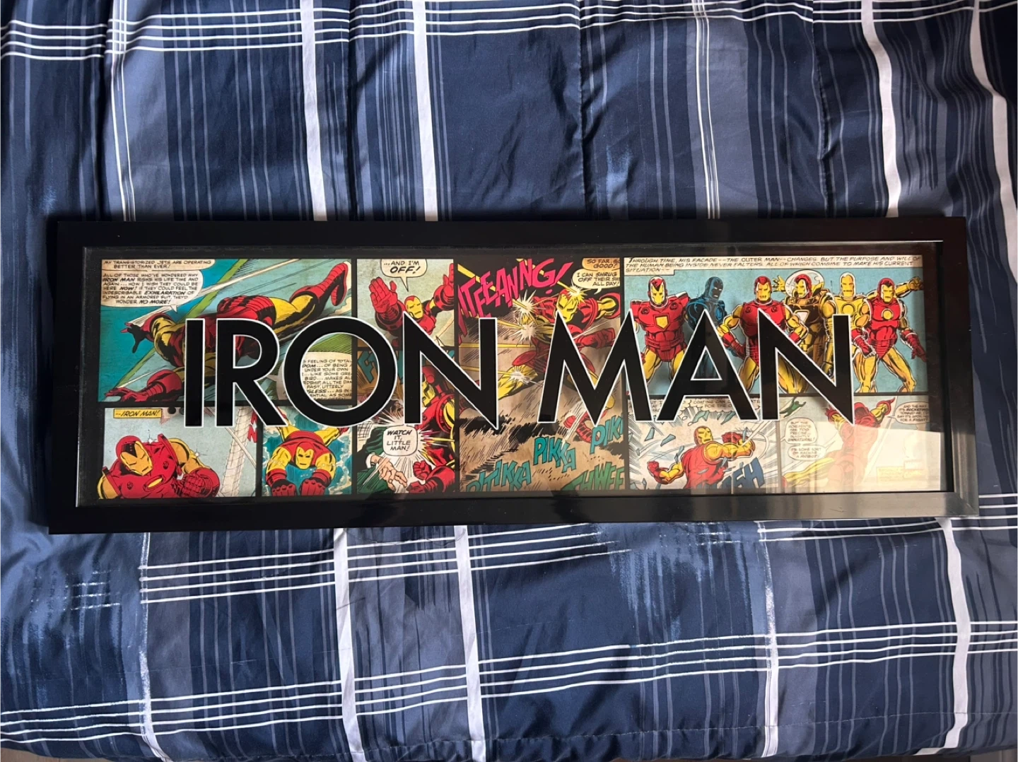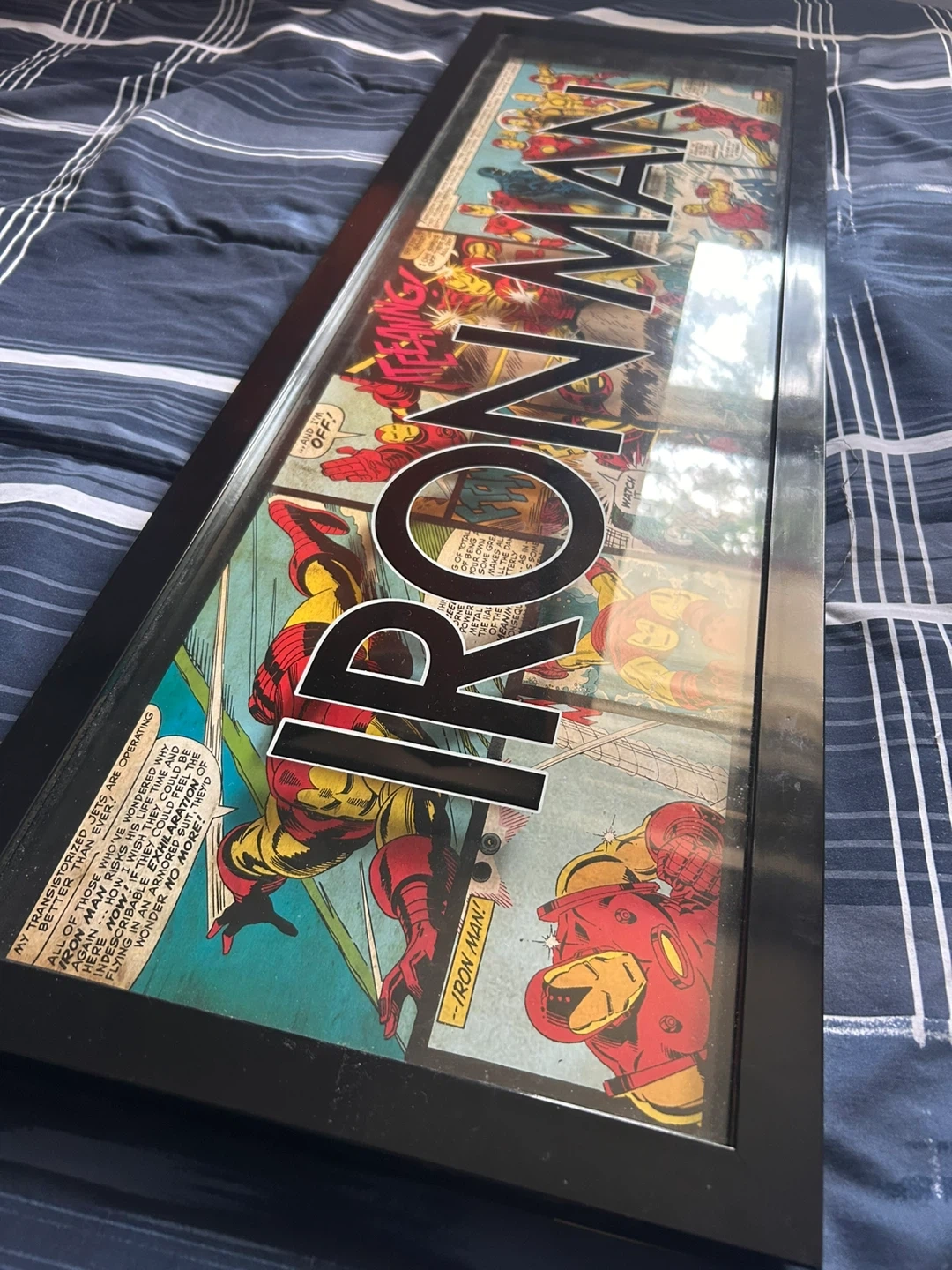 Selling a framed piece of Marvel Iron Man comic book art! It's a great addition for any Marvel fan's collection or to add a pop of colour to your space. The frame is in good condition and ready to hang Size is 36” x 12”