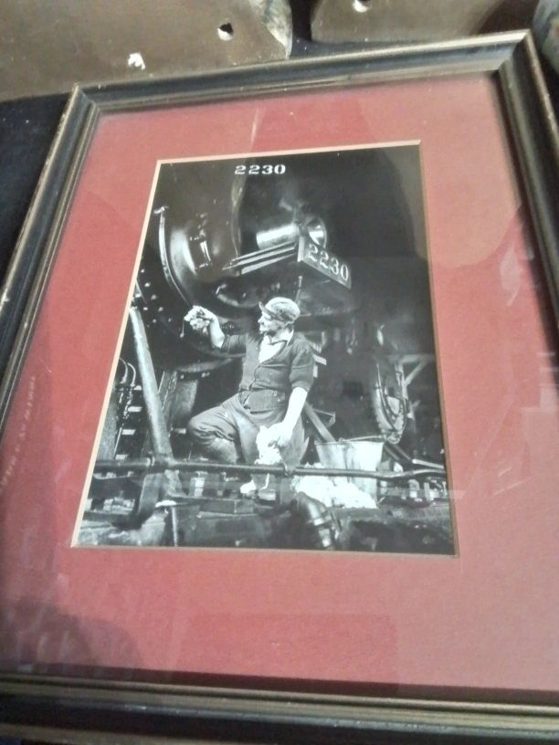 Framed Photo of Train Engine 2230 Here's a framed black and white photo of a train engine, number 2230. It's a cool piece of history! Railway Photo Capture a piece of railway history with this framed black and white photograph of a Canadian Pacific Railway worker with Engine 2230, circa 1927. The photograph is accompanied by a letter from the photographer detailing the scene. The frame measures approximately 15.5 inches by 12.5 inches. This photograph offers a glimpse into the past. Own a tangible connection to a bygone era. Please note, if the ad is up, the item is available Yonge Street and Steeles Avenue