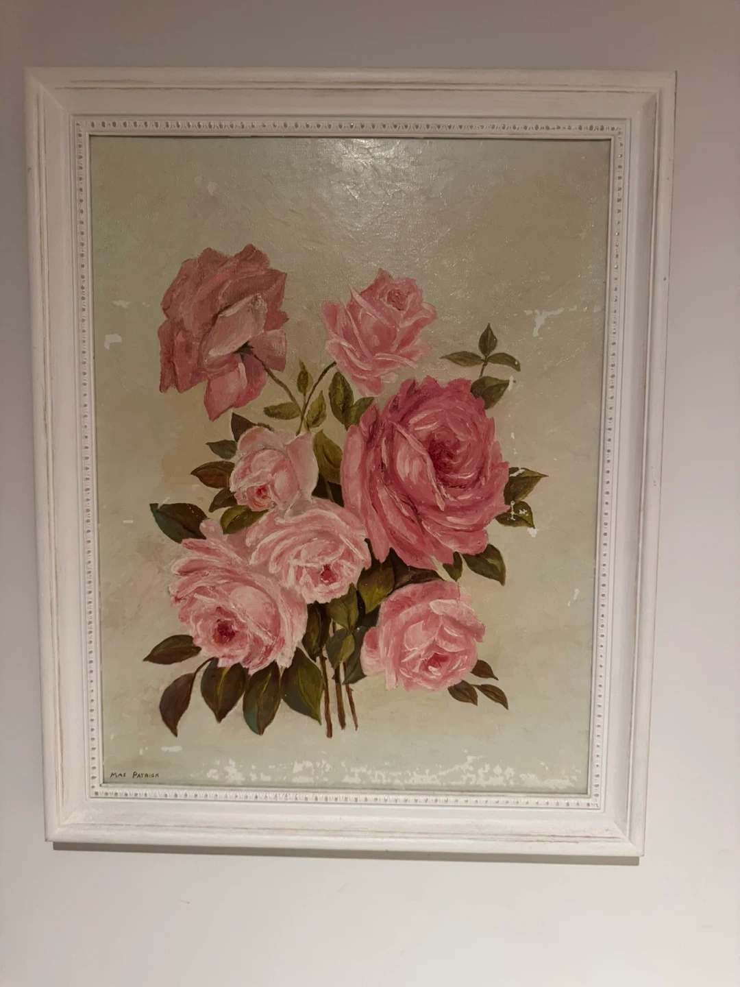 10Selling a lovely framed painting of pink roses by Mae Patrick. It's a beautiful piece to add a touch of floral elegance to any room. Measurements W 16.5” x H 20.5” Cash only Pick up Avenue road north of Lawrence.