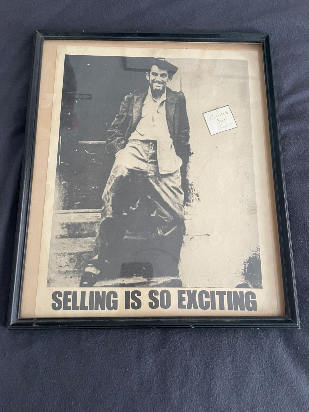 This framed print features a black and white image with the text "SELLING IS SO EXCITING" at the bottom. Vintage