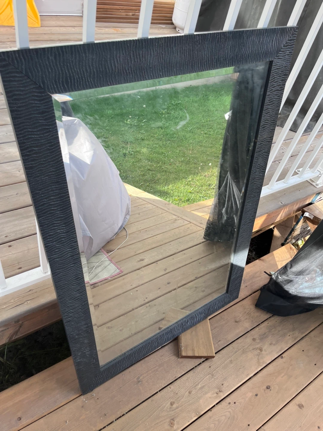 Selling a framed wall mirror with a stylish black frame. It's in good condition and ready to add a touch of elegance to your home!