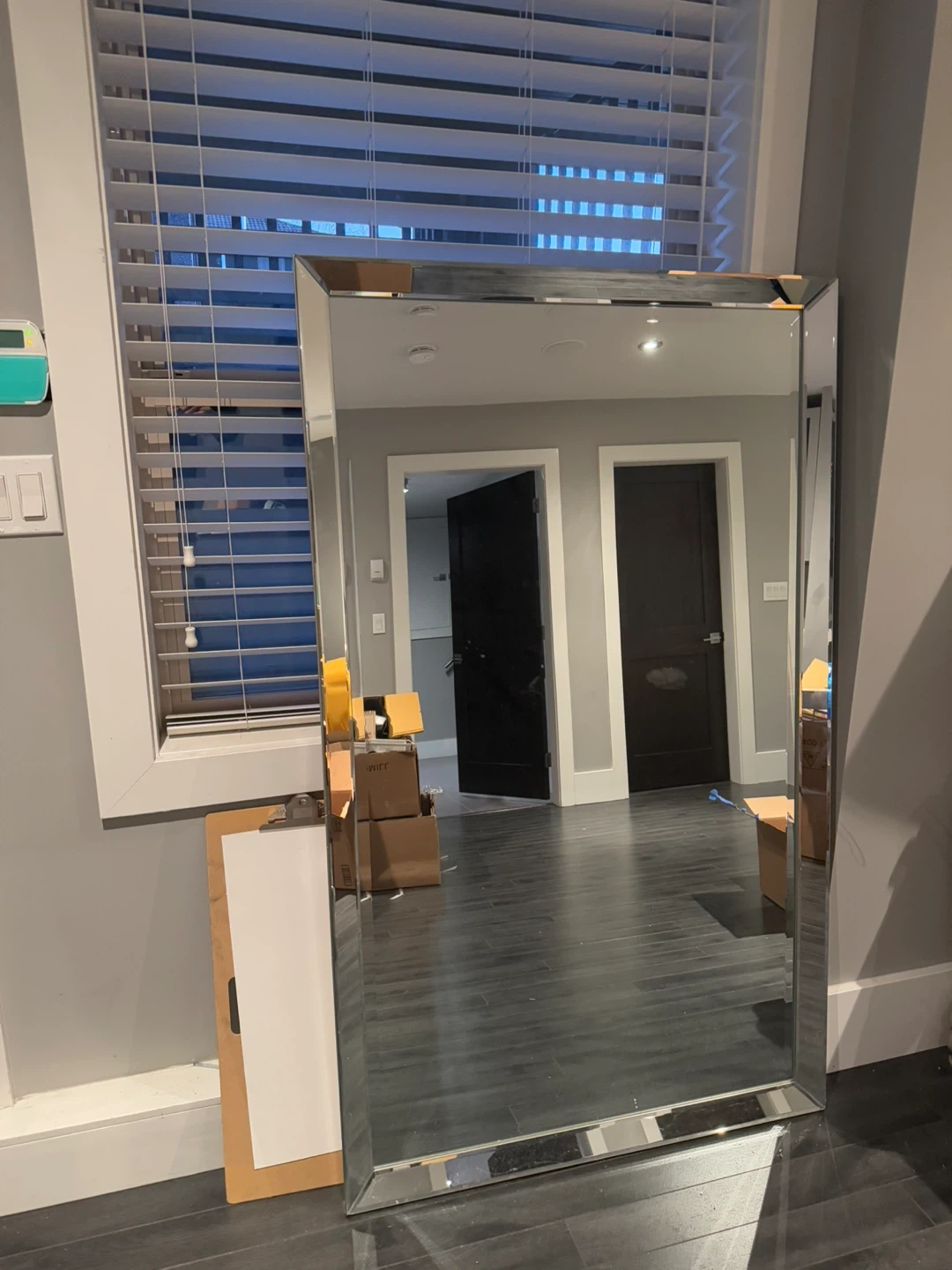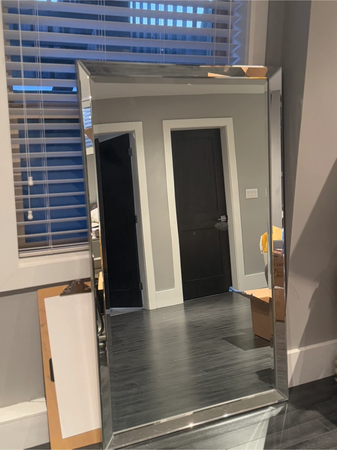 Selling a framed wall mirror. It's in great condition and ready to brighten up any room! It's a stylish and functional piece that will add a touch of elegance to your home