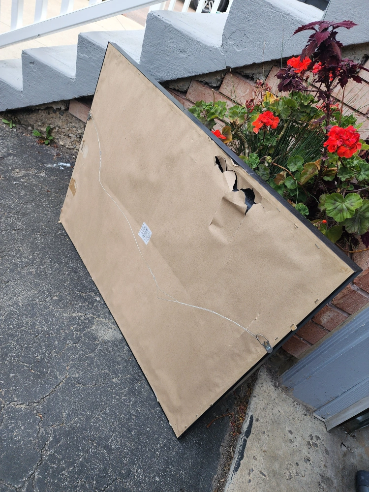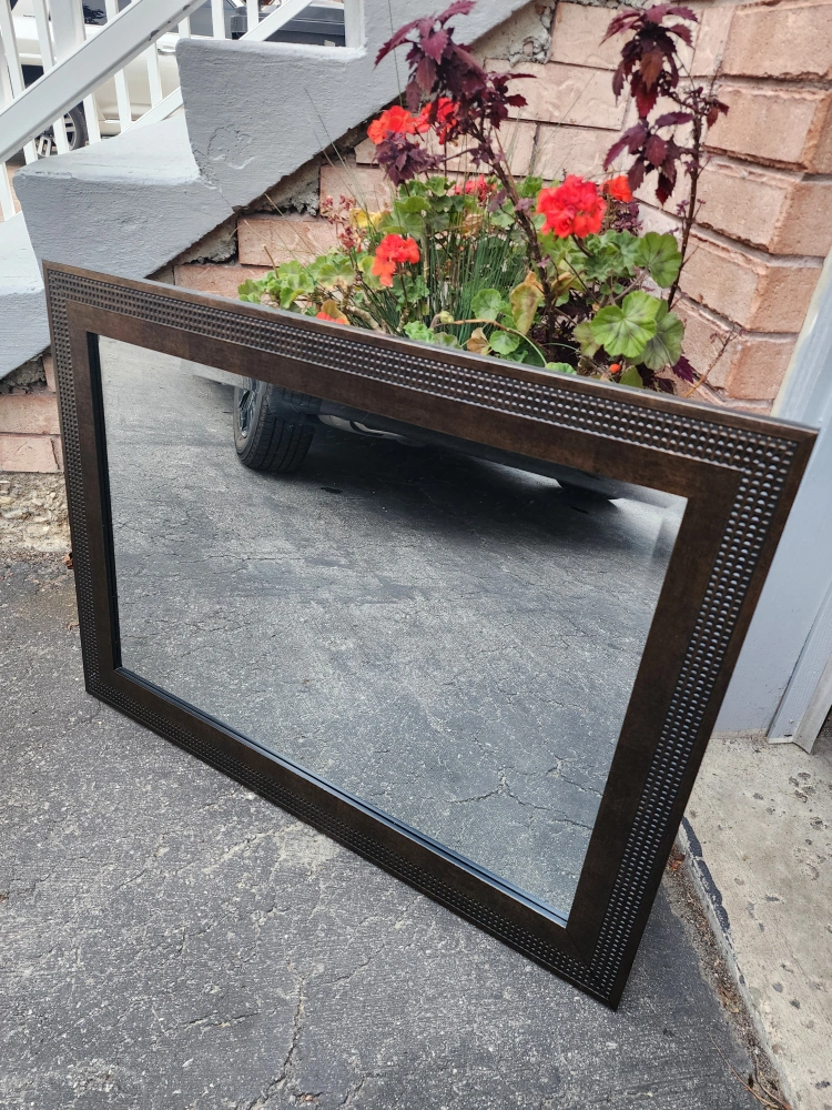 Selling a framed wall mirror. It's in good condition and ready to add some style to your home. The frame has a textured finish.