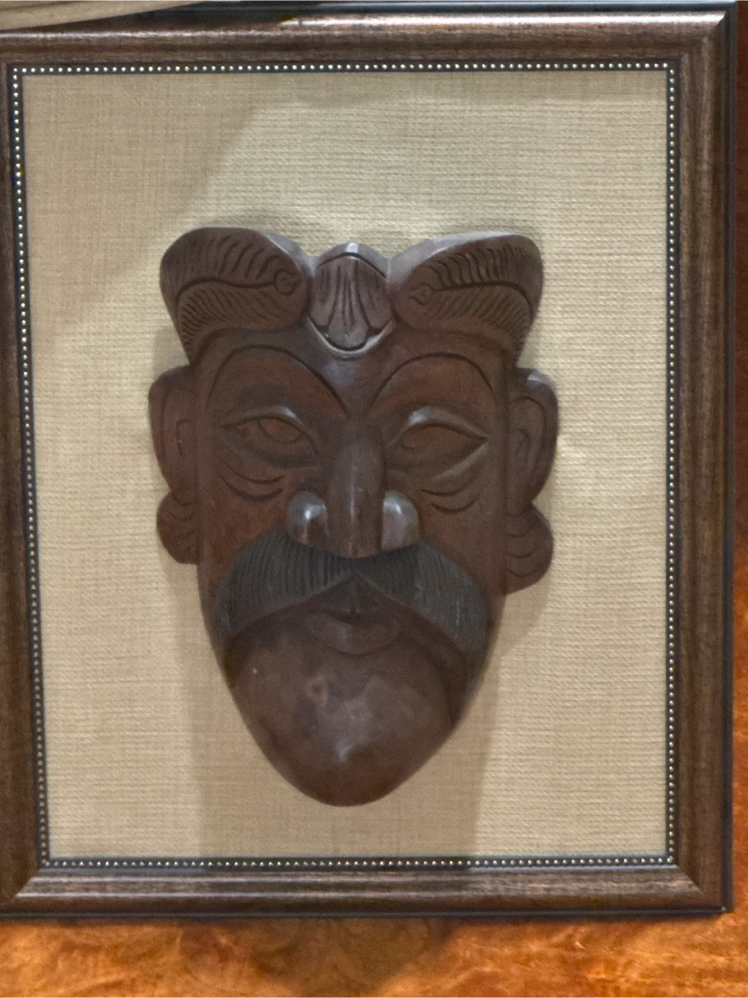 10This is a framed wood carved mask. It's a really unique piece of art that would look great in any home