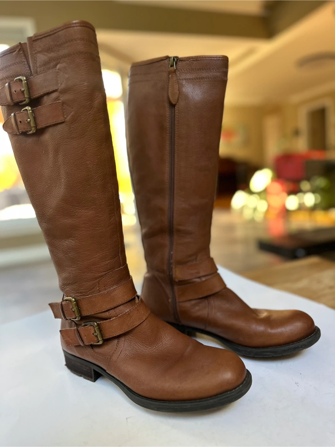 65In excellent preloved condition. FRANCO SARTO leather riding boots. Size EUR 39.5 / US 8.5 These shoes have been meticulously cleaned and sanitized. From a smoke free, pet free home. Pick up in Alta Vista.