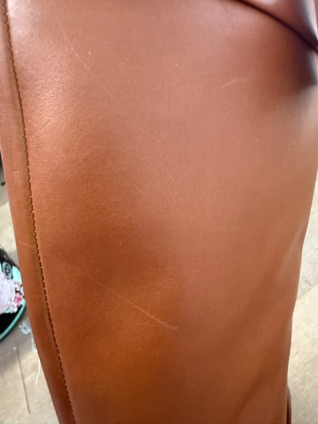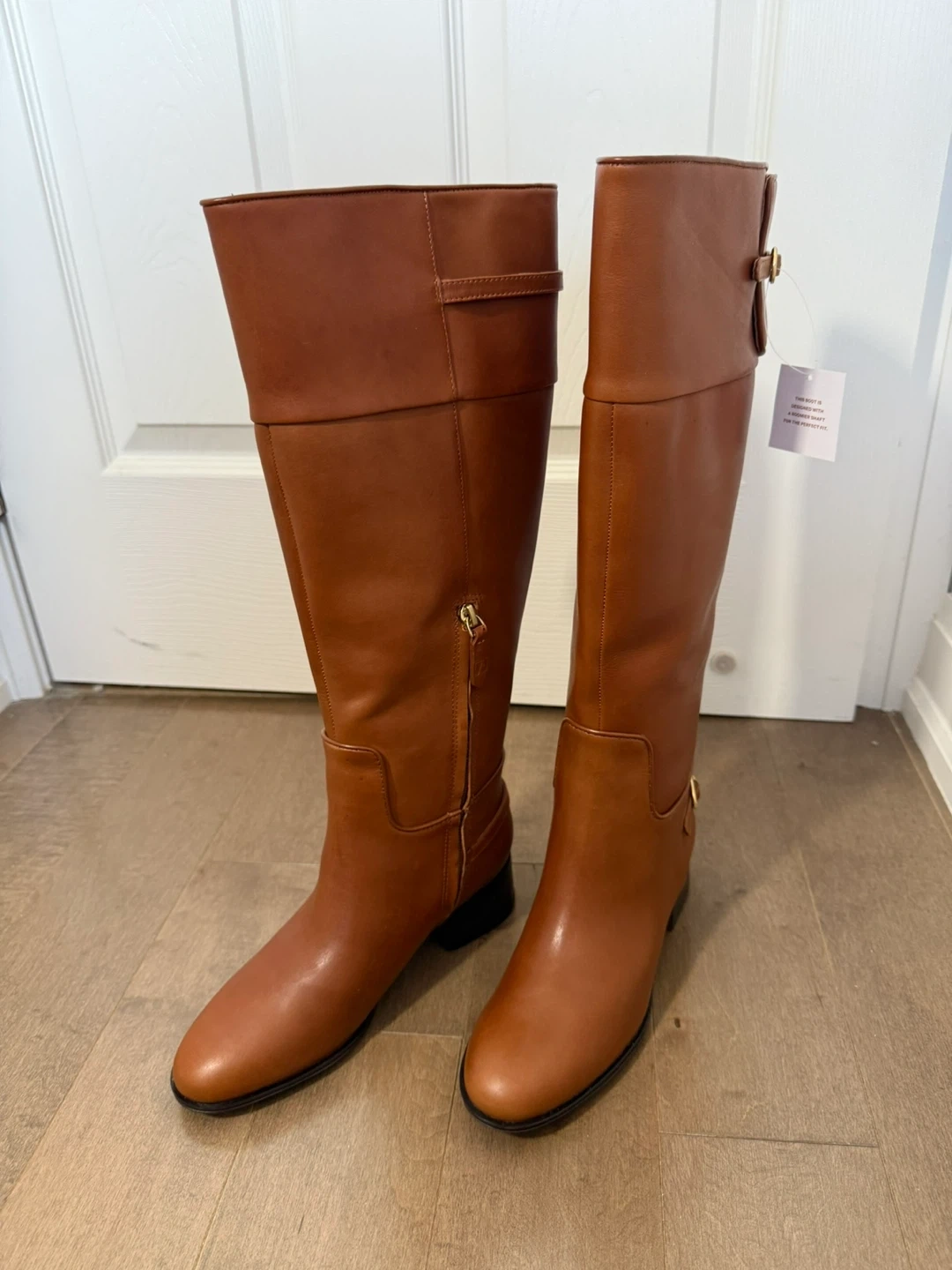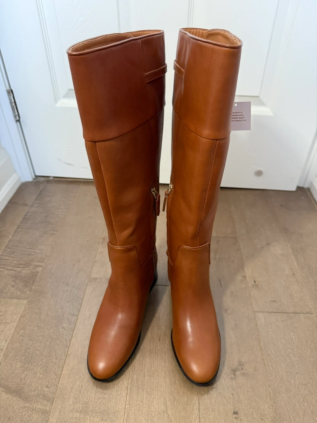 65These are a beautiful pair of Franco Sarto riding boots in tan leather. They're in excellent condition and come with the original box. Perfect for fall and winter! 15.6” shaft length There’s a tiny scratch ( see close up photo)