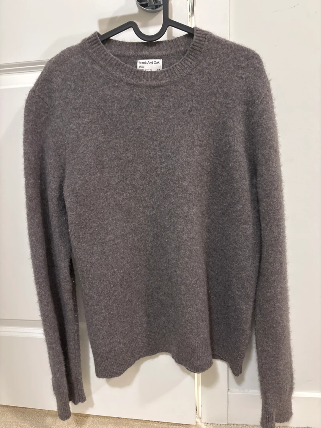 32Here's a comfy Frank And Oak sweater in size XXL but fits like S/M. It's a lovely neutral colour, perfect for layering on those chilly days. Made of mohair.