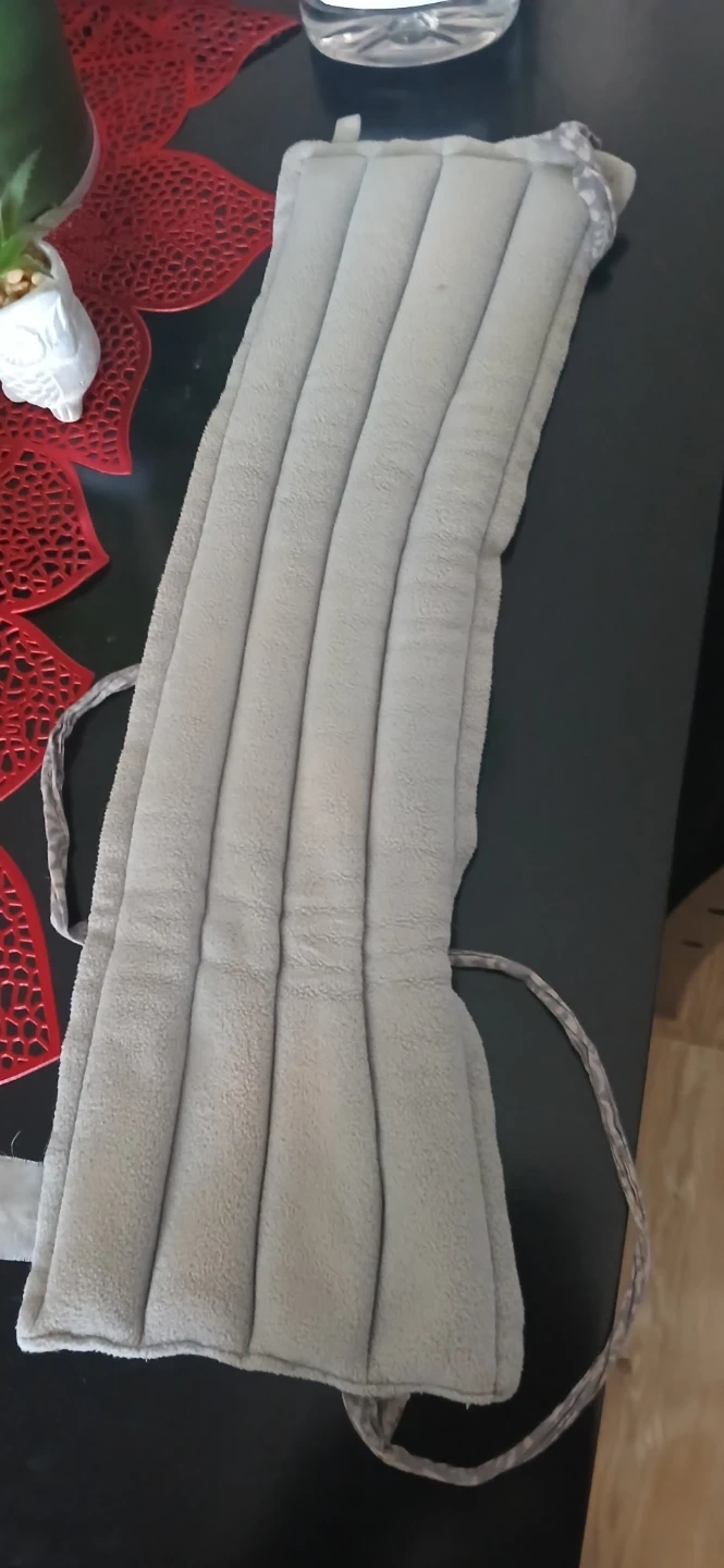 🌳Soft gray quilted heat pack. It's filled with beads and has ties for secure placement. Great for soothing aches and pains must have a microwave to heat it up.