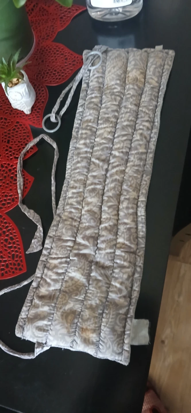 🌳Soft gray quilted heat pack. It's filled with beads and has ties for secure placement. Great for soothing aches and pains must have a microwave to heat it up.