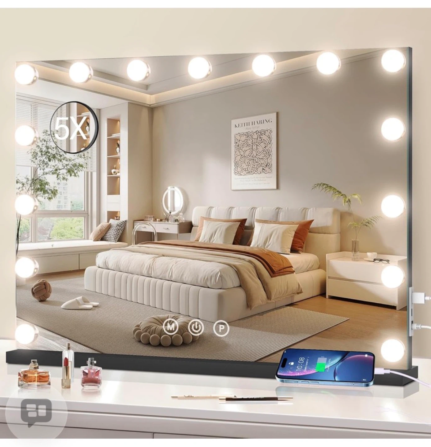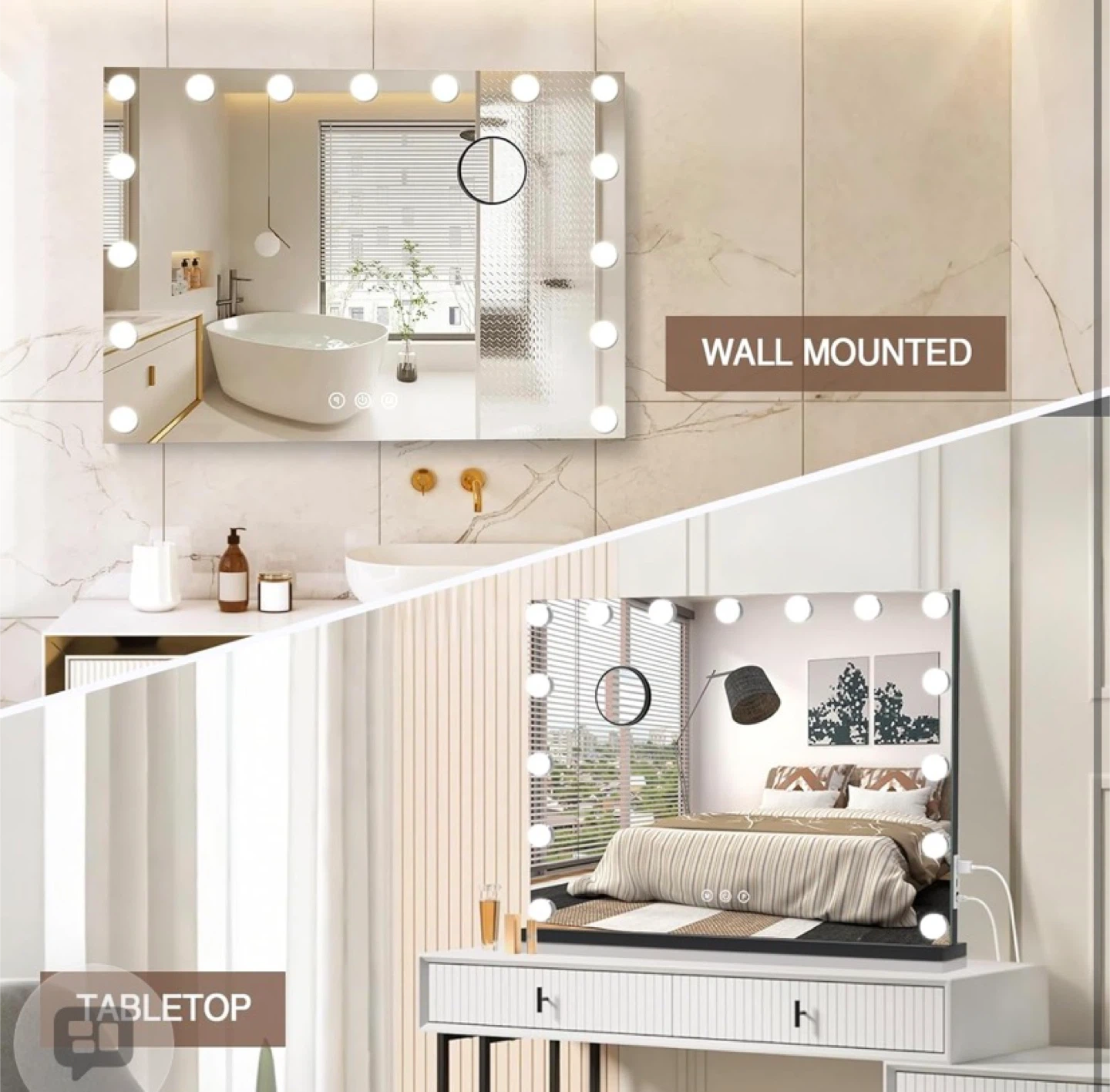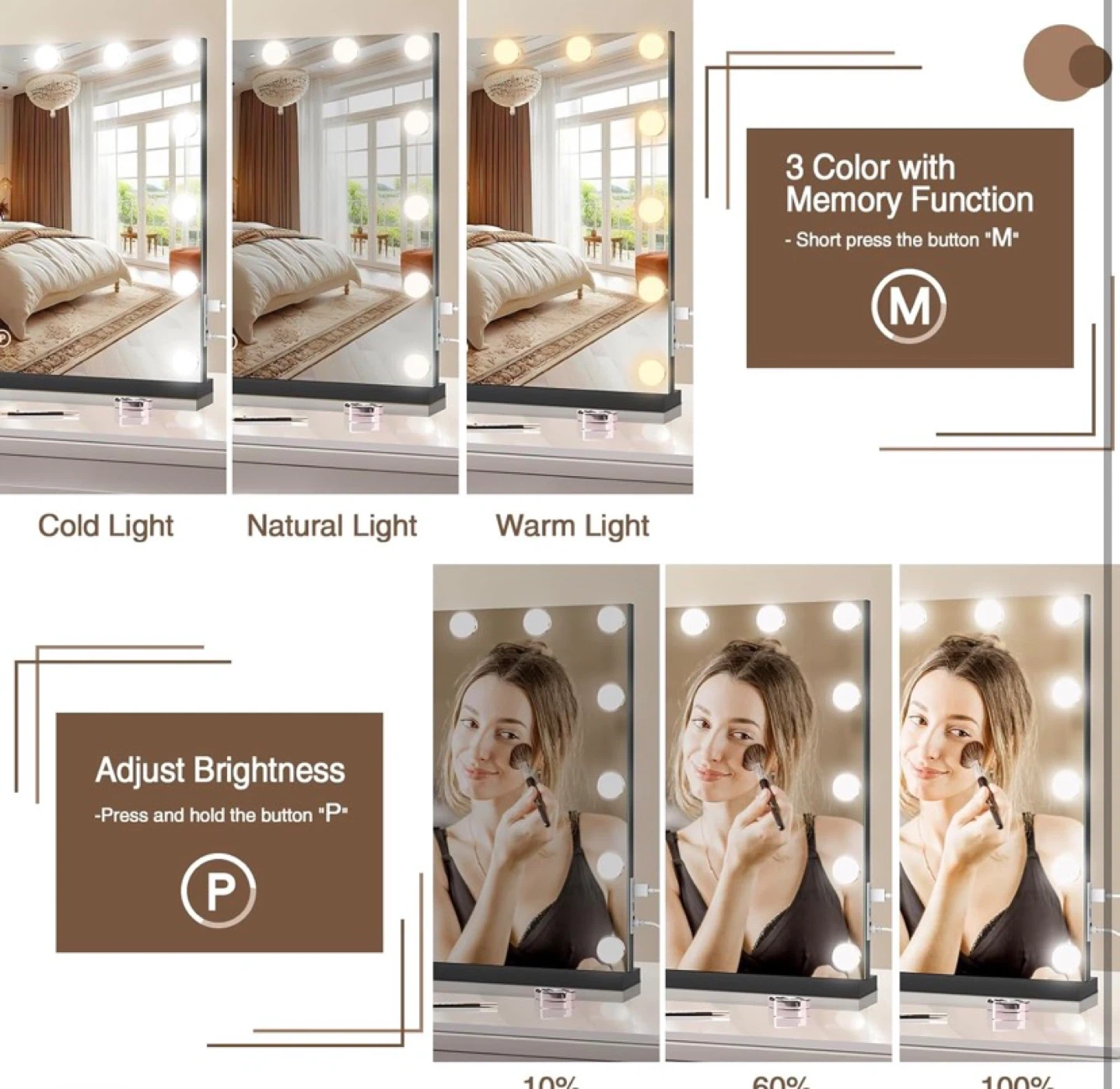 Lighted Makeup Mirror 19" L x 23" Light Hollywood Mirror with Detachable 10X Magnification Hollywood Vanity Mirror with Lights Smart Touch Control Hollywood Lighted Mirror with 15 LED
