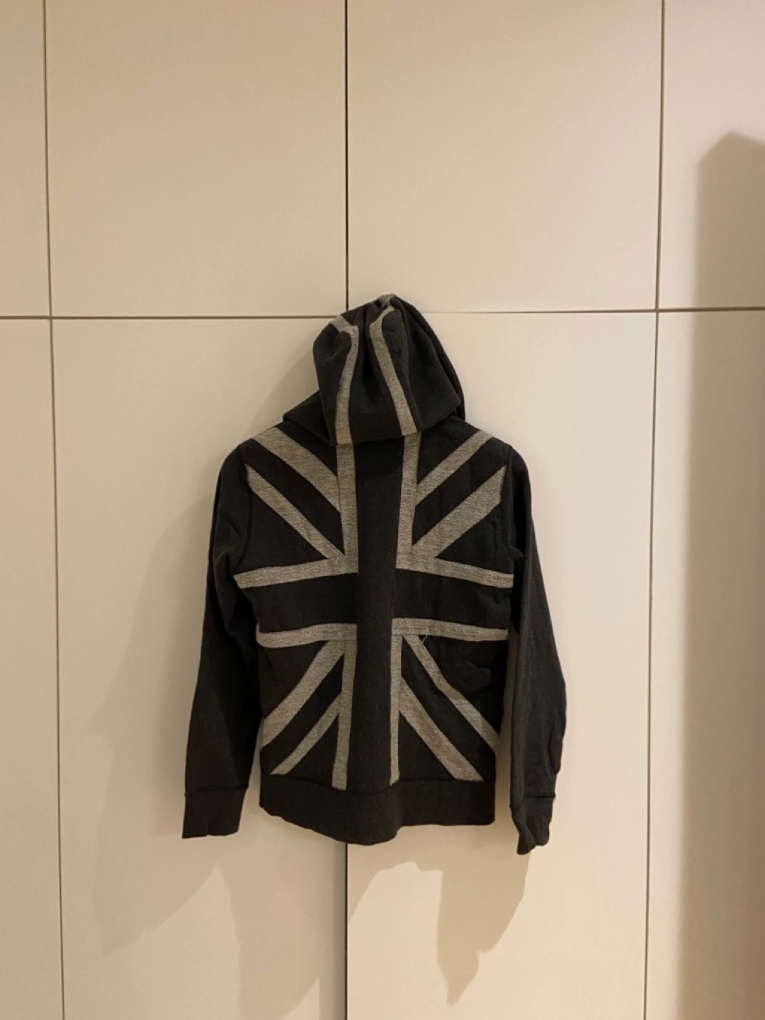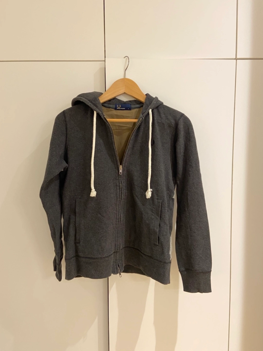 Grey zip-up hoodie with a Union Jack on the back and Fred Perry logo on the front. Size small Fredperry hoody with beautiful England Flag at the back! Flat shoulder: 15 inches Chest: 18 inches Length: 23 inches Sleeve: 23 inches