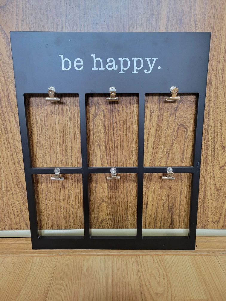 FREE 6-Photo Picture Frame -VERY EXCELLENT CONDITION 👌 -Black frame -White print "Be Happy" -6 moveable clips to hang photos 📸PLEASE SEE PHOTO GALLERY FOR MORE DETAILS ABOUT THIS ITEM📸 Asking only $0 (IT'S FREE!!!) ⚠️Please only message if you are SERIOUS about buying AND you know when you'd like to pick up.⚠️ 🚙Located in North Oshawa BEATRICE & RITSON area.🚙 ⏰️No holds longer than 2 days.⏰️ ❗️CROSS POSTED❗️