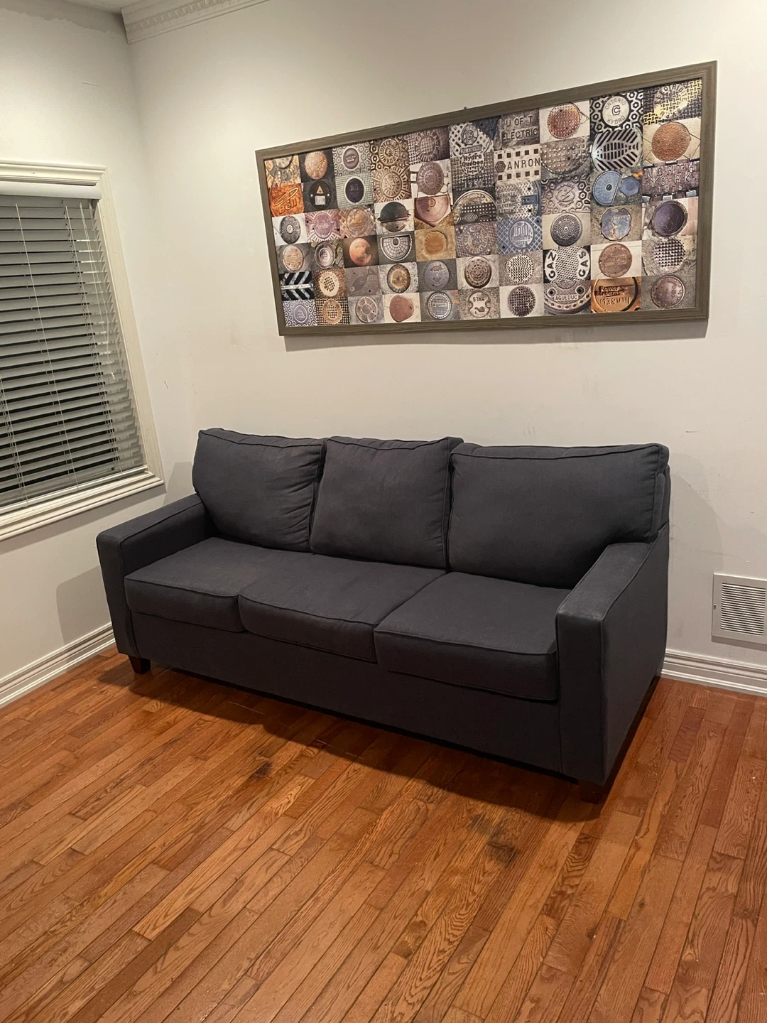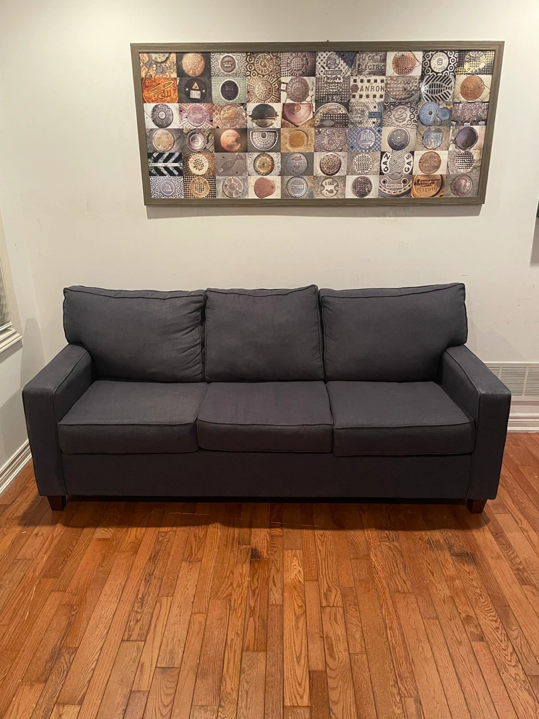 Looking to sell this comfy three-seater sofa! It's a great addition to any living room and provides plenty of space to relax. The sofa is in good condition and ready for a new home. Perfect for lounging and movie nights! I am willing to deliver for free within 20 km from my house. If you have any questions, let me know.