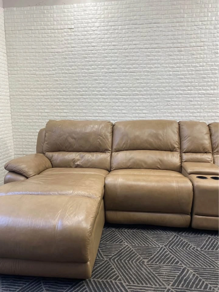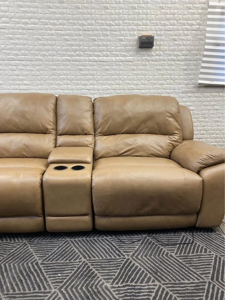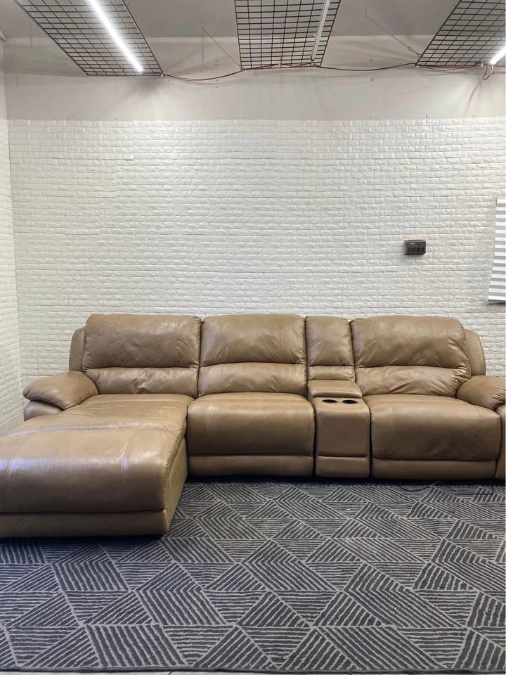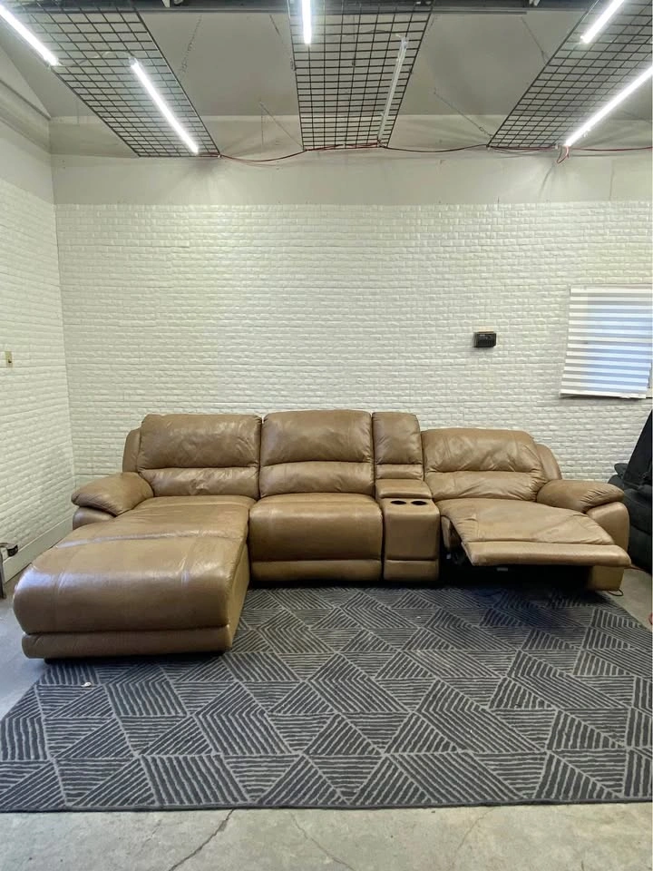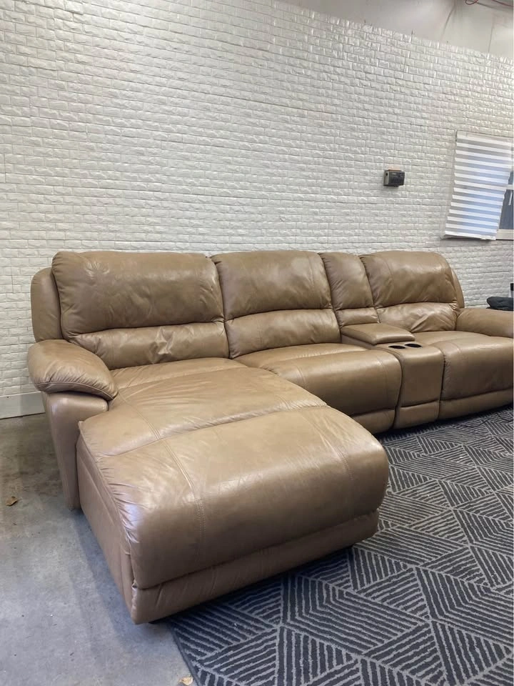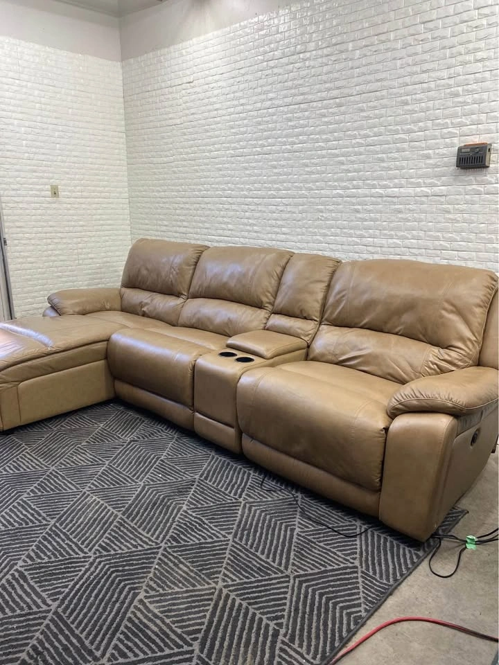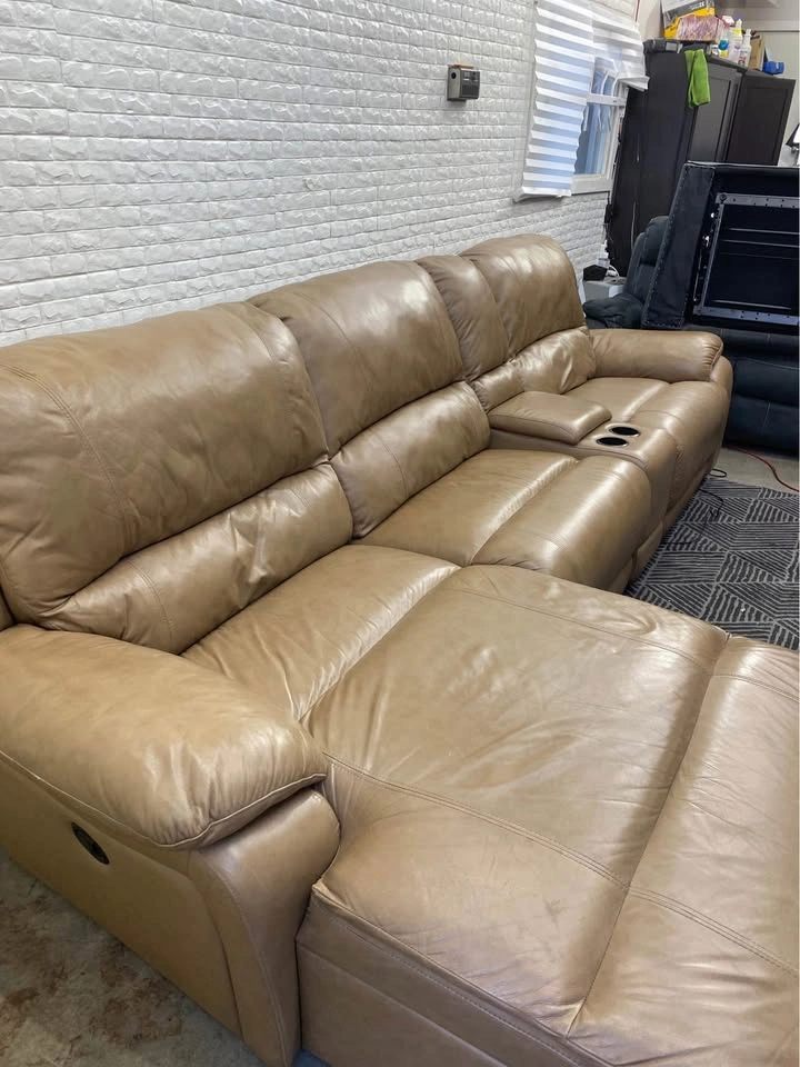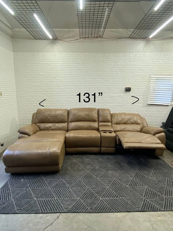 10Good condition used genuine leather sectional. Very durable. Wide seating areas. Chase reclines into almost a bed, other side is also an electric recliner. Comes apart into 4 pieces for easy transport. Serious inquiries only. Please confirm measurements beforehand. If there’s a schedule a time, please be on time or let us know ahead of time if there’s any changes. Thank you!