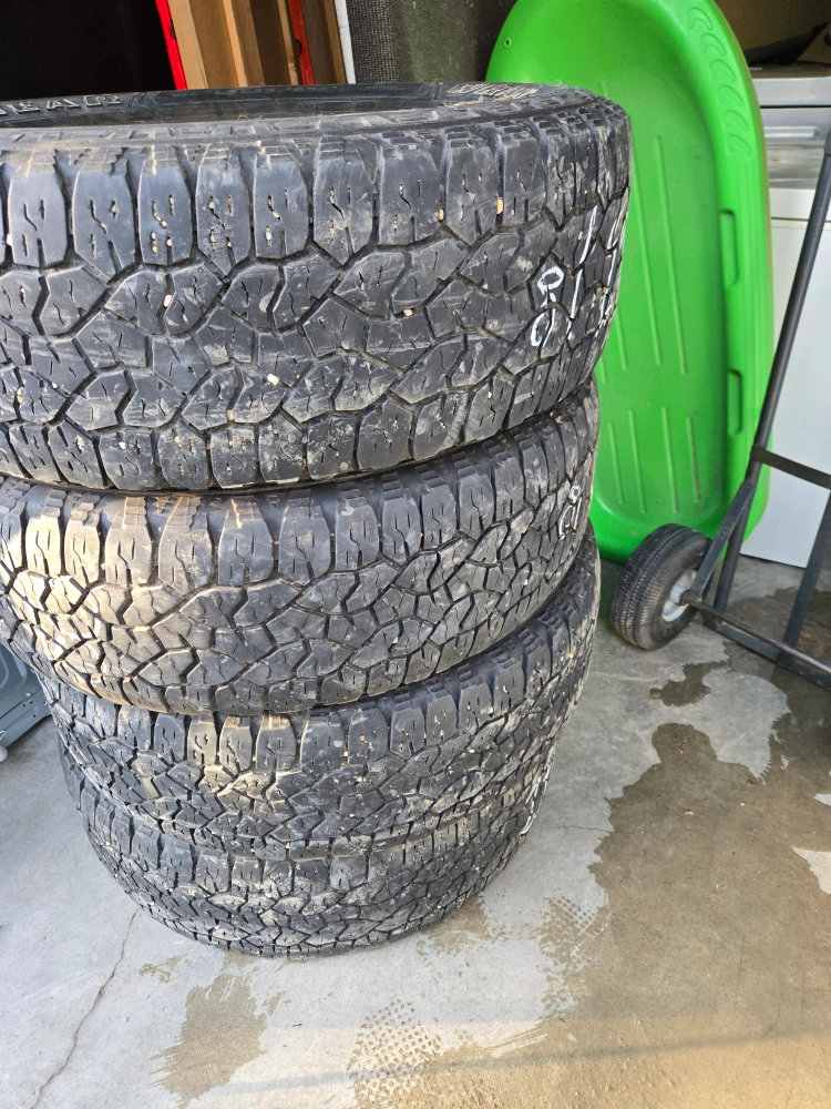 FREE DELIVERY!! Goodyear Wrangler Workhorse A/T Tires( 4 ) $350 I'm offering a set of four Goodyear Wrangler Workhorse A/T tires Size LT275/65R18. Retail price $312 + tx. see Pic in ad These are used tires but still have many years of life left. Please review the photos for condition. Tired of tire-ing decisions? These tires will have you rolling in no time! If the ad's up, the tires are available!