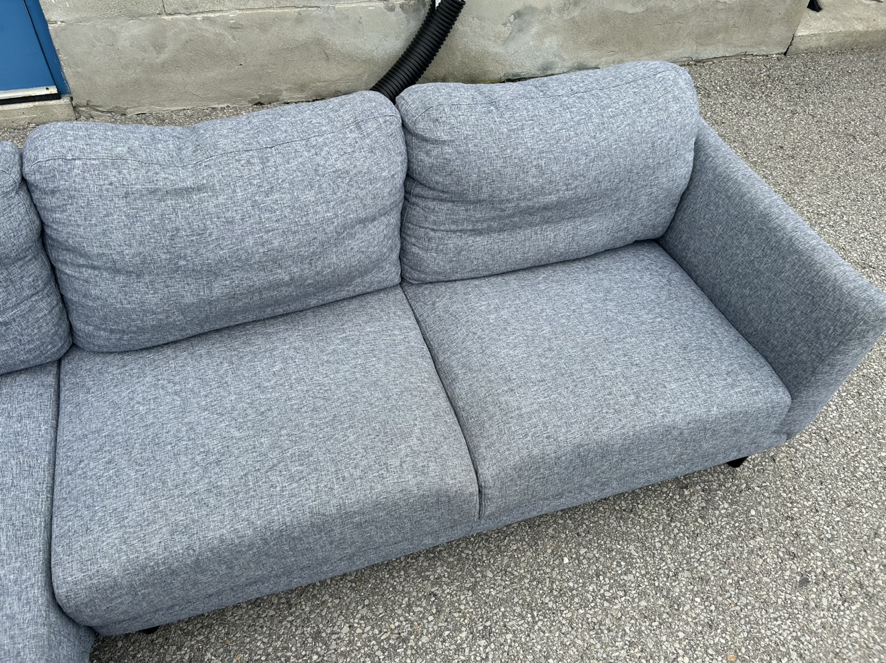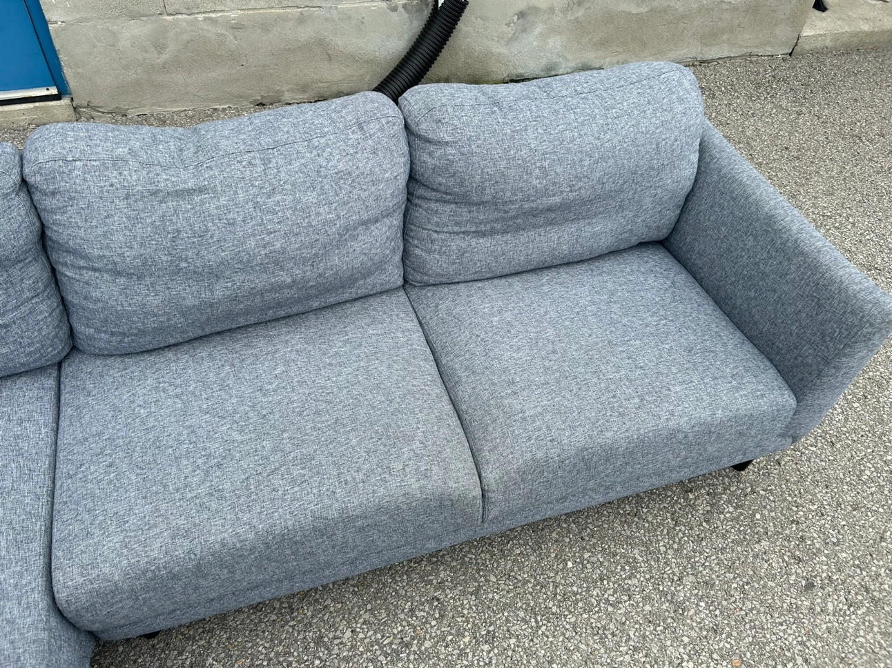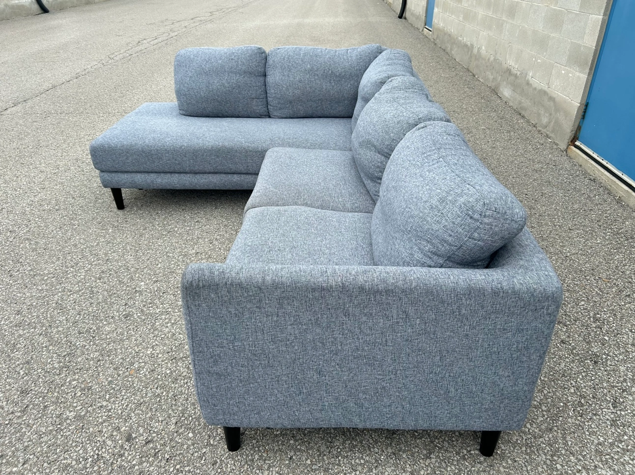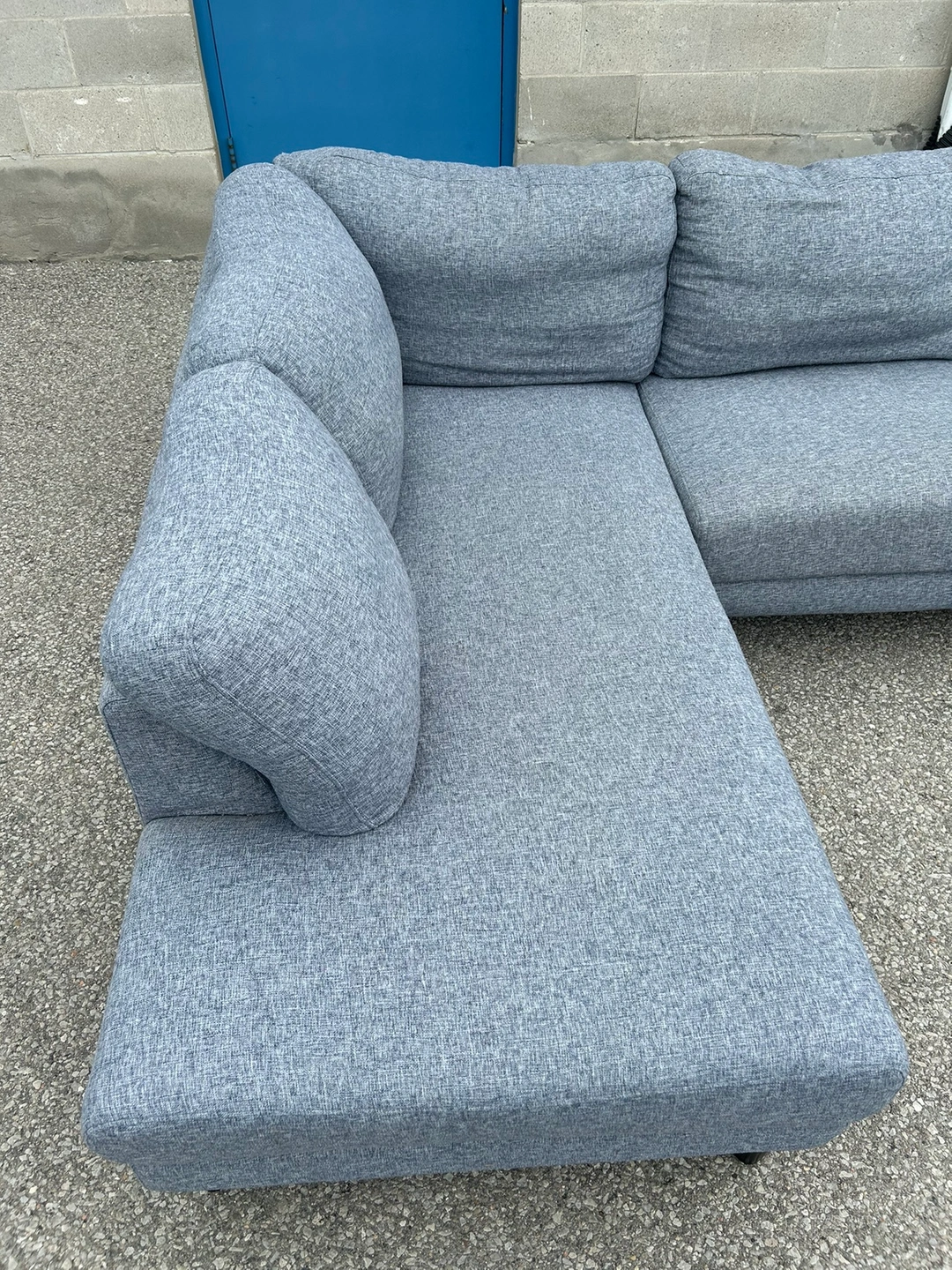 **SAME DAY FREE DELIVERY AVAILABLE** $450/OBO Description - Sectional shaped couch - Colour: Grey - comes in pieces for easy transport (2) - comfy - nice design - some wear / lint pile up - no major stains/marks - L: 100” x W: 76” x H:30” (approx) First come first serve! **SAME DAY FREE DELIVERY AVAILABLE**