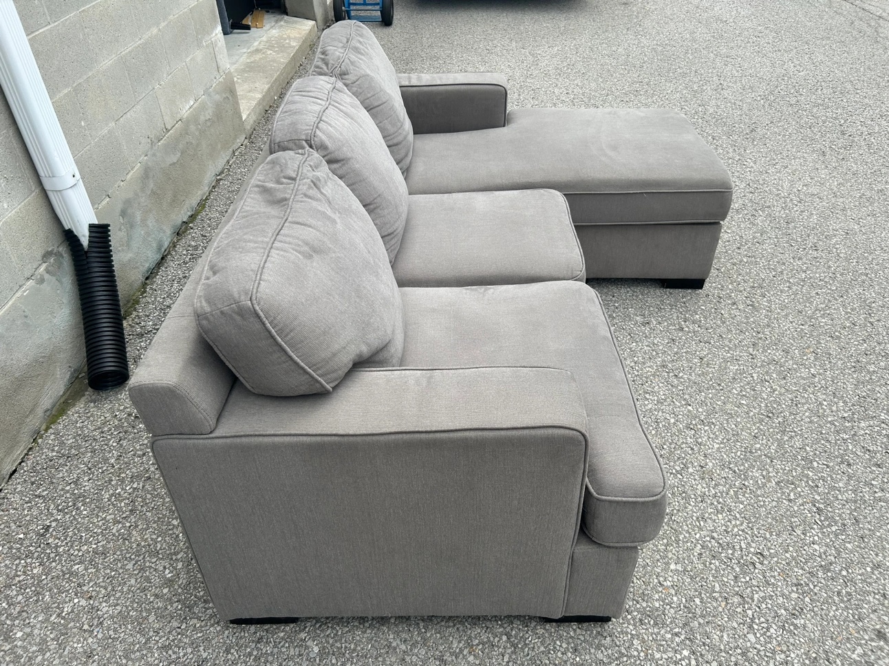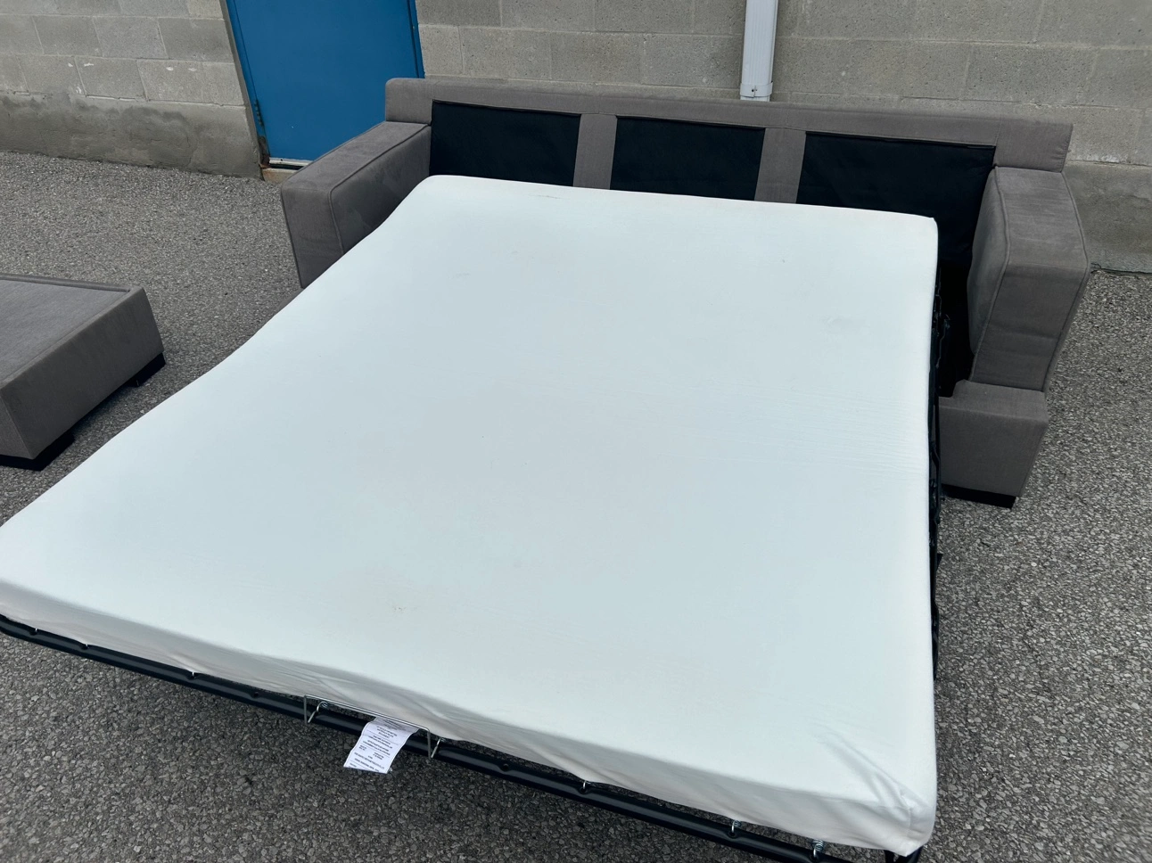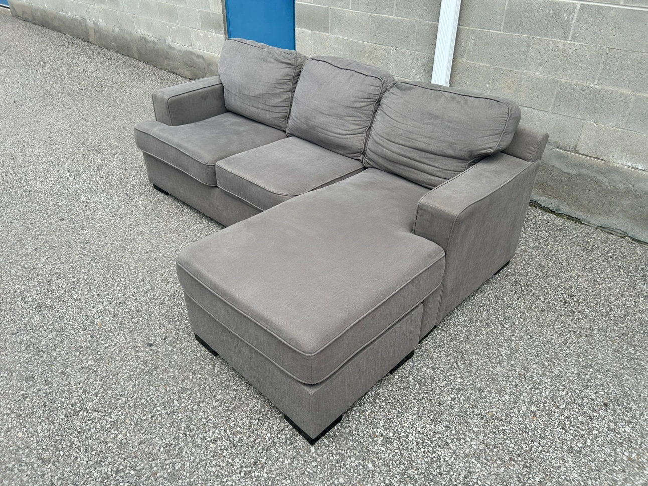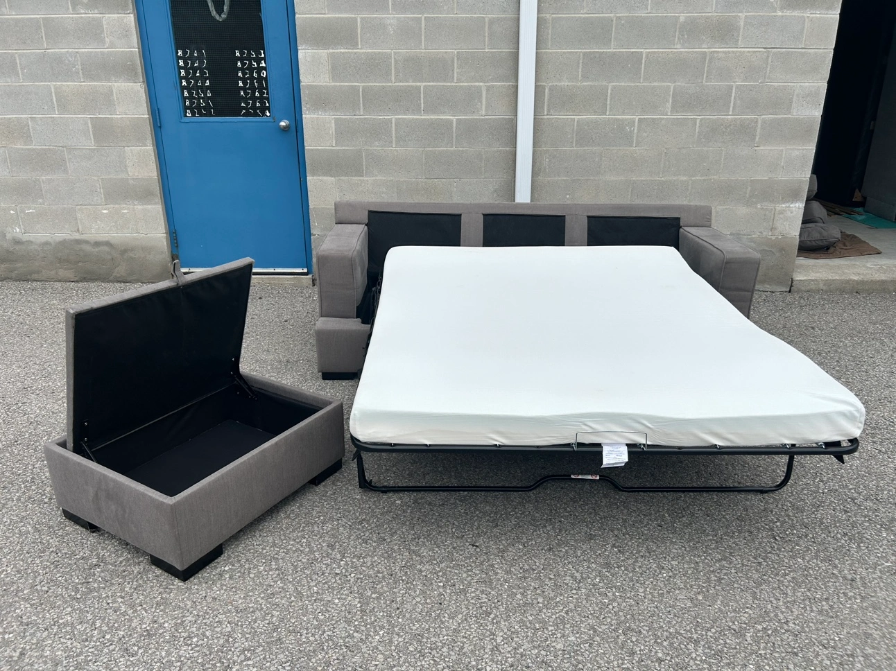 **SAME DAY FREE DELIVERY AVAILABLE** $450/OBO Description - sectional couch / l shape couch / corner couch - Colour: grey - pullout bed w/ mattress - small storage compartment - comfy - nice design - washable cushions & pillows - can be dissembled for easy transporting - minor wear - no major marks/stain - L: 86” x W: 60” x H:30” (approx) First come first serve! **SAME DAY FREE DELIVERY AVAILABLE**