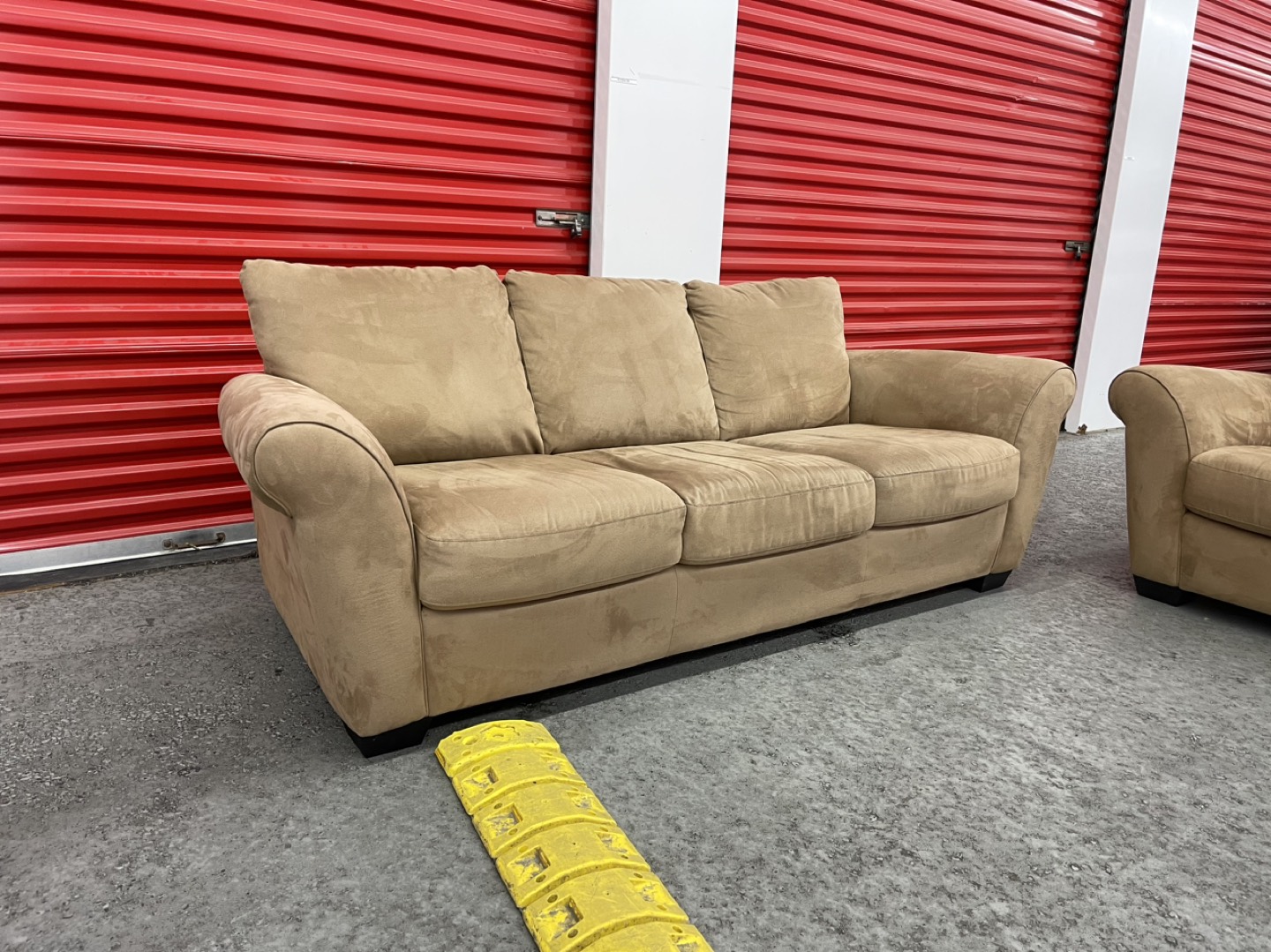 78Free delivery anywhere in Toronto. Can deliver anywhere in the GTA for $50. Suede Natuzzi couch and loveseat in excellent condition. No rips, stains or bugs. From a smoke free, pet free home. Very comfy. Couch is 7 feet 5” Loveseat is 5 feet 6”