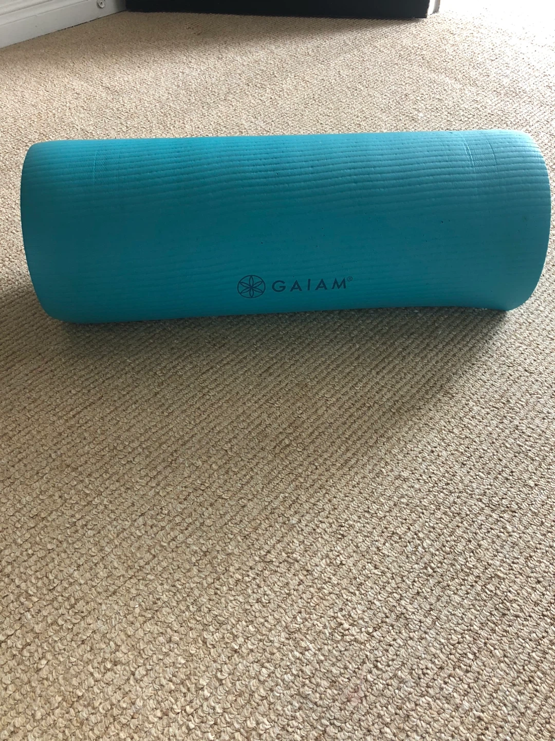 FREE a Gaiam yoga mat in turquoise. It's in good condition and ready for your next yoga session!