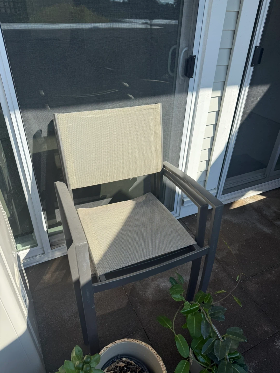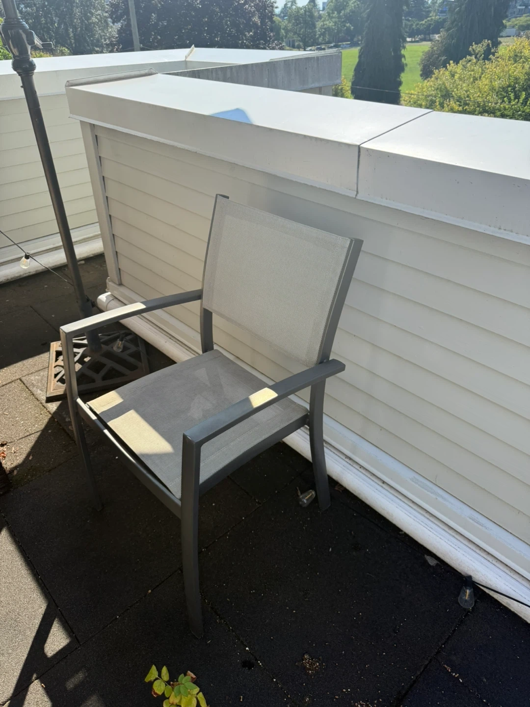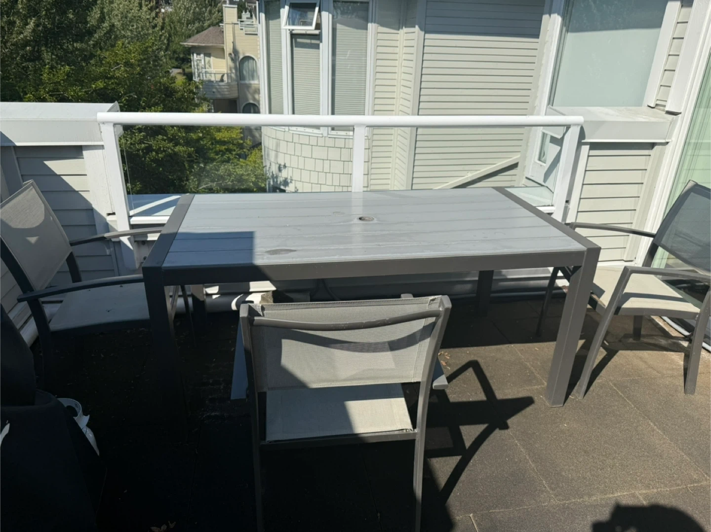 Free for pick up a patio table with 6 chairs. It's perfect for enjoying the outdoors on your balcony or patio. The set is in good condition and ready for a new home!