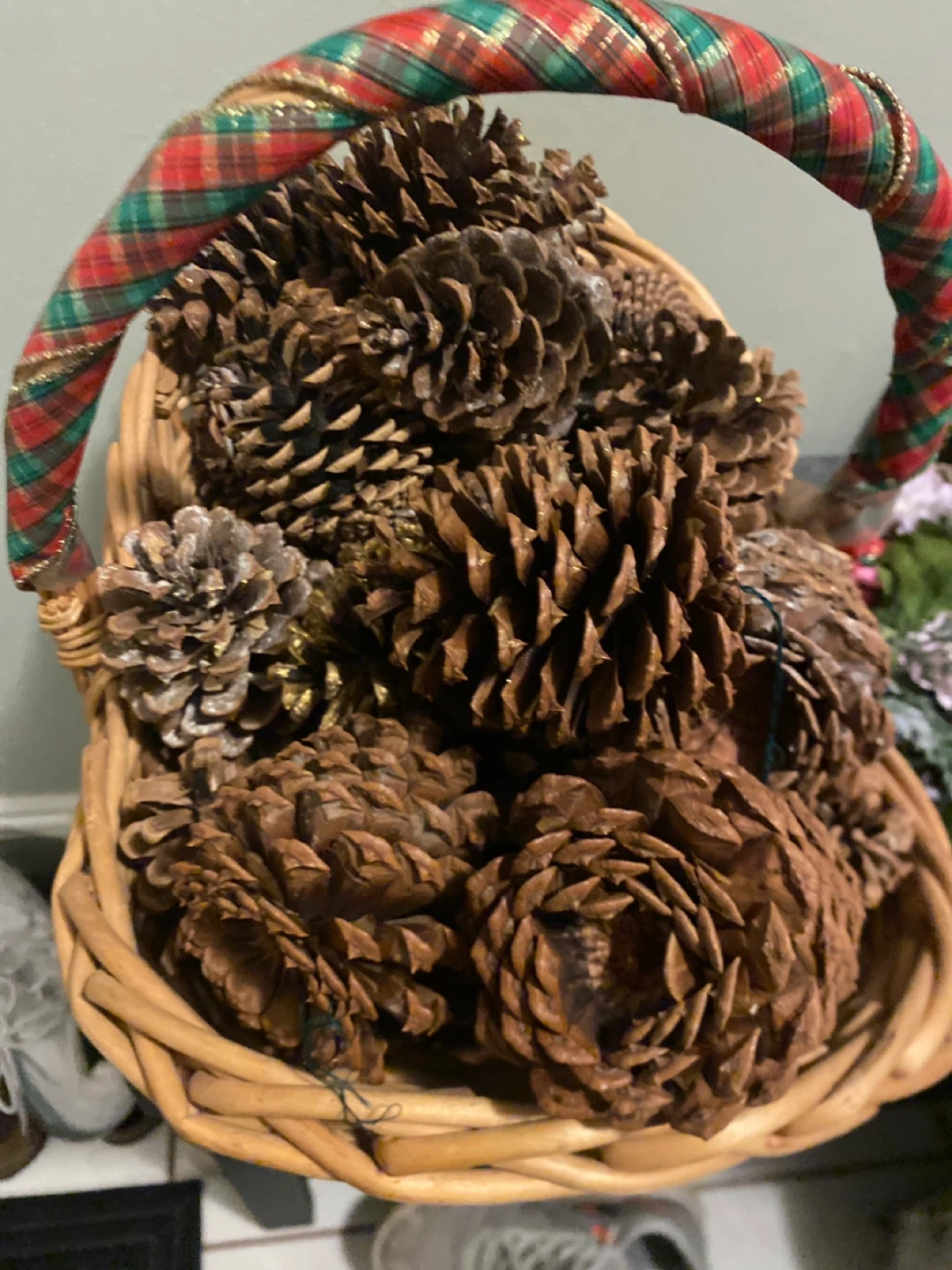 21A cute decorative pinecone basket with a handle. Perfect for adding a rustic touch to your home decor
