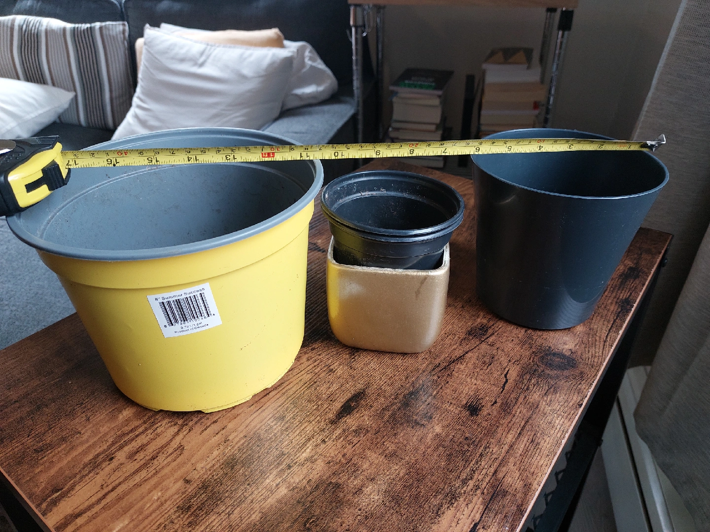132Giving away a few different sized plant pots! the small rectangular one is ceramic, the others are plastic.