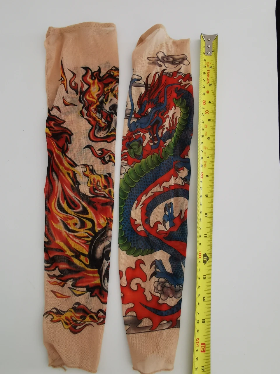 712Add some edge to your look with these tattoo sleeves! One features a cool dragon design, and the other has a flaming skull. They're perfect for costumes, parties, or just adding a bit of fun to your everyday style Pickup at Bur Oak @ McCowan Markham, or at 70 Queens Wharf Rd, downtown Toronto around noon most of Sundays