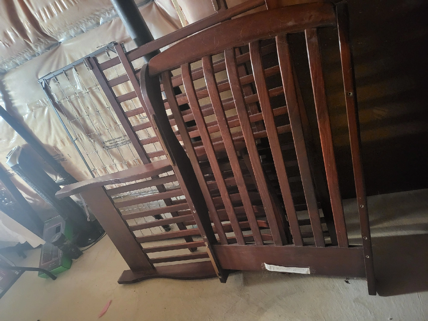 79FREE wooden baby crib. It's in good condition and ready for a new home. Perfect for your little one's nursery! missing screws but can be easily found.