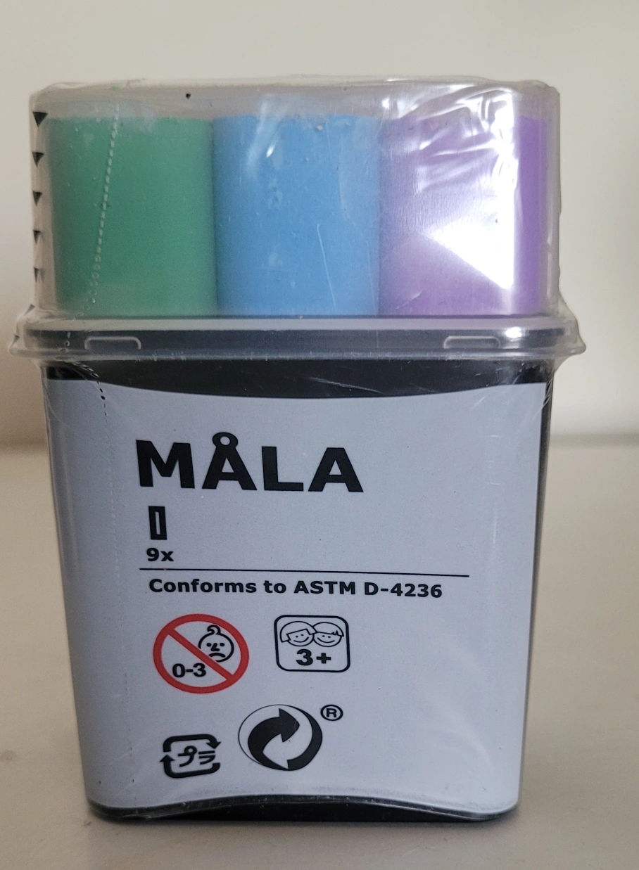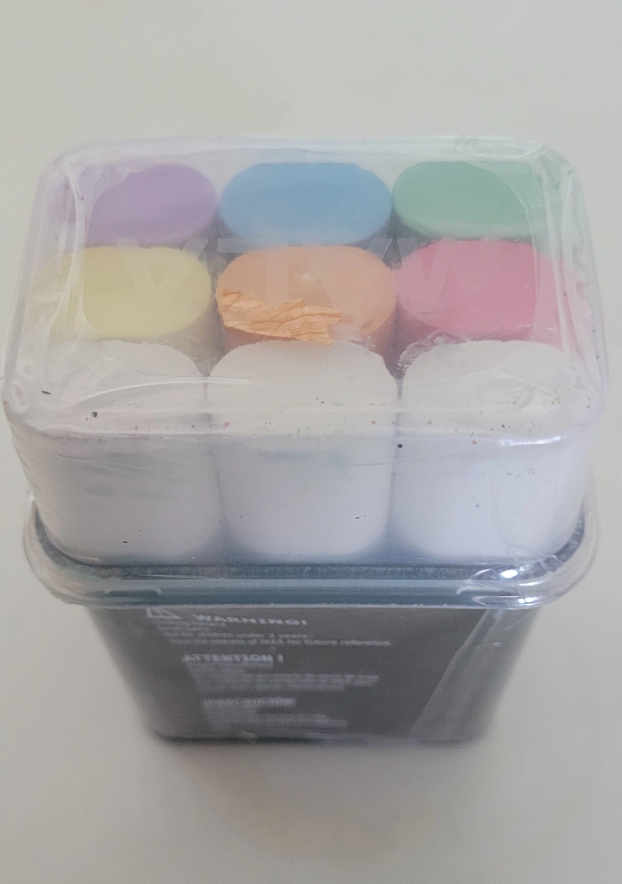 Nine crayons in a plastic container. The container appears to be sealed. You can easily use them for drawing and creating different colors, bringing moments of peace to your day.